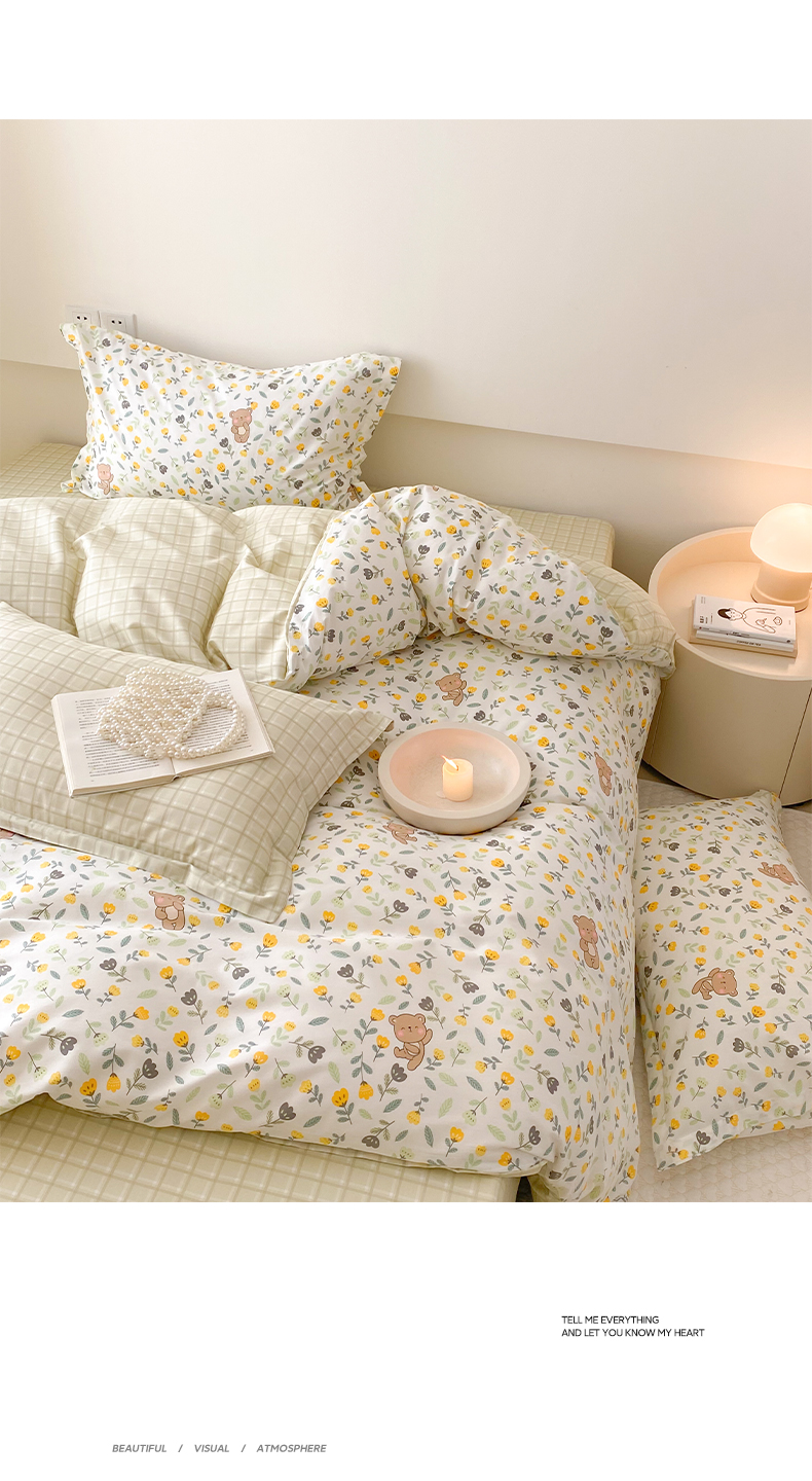 慕希家纺 2025新款全棉13372印花四件套 朵朵熊