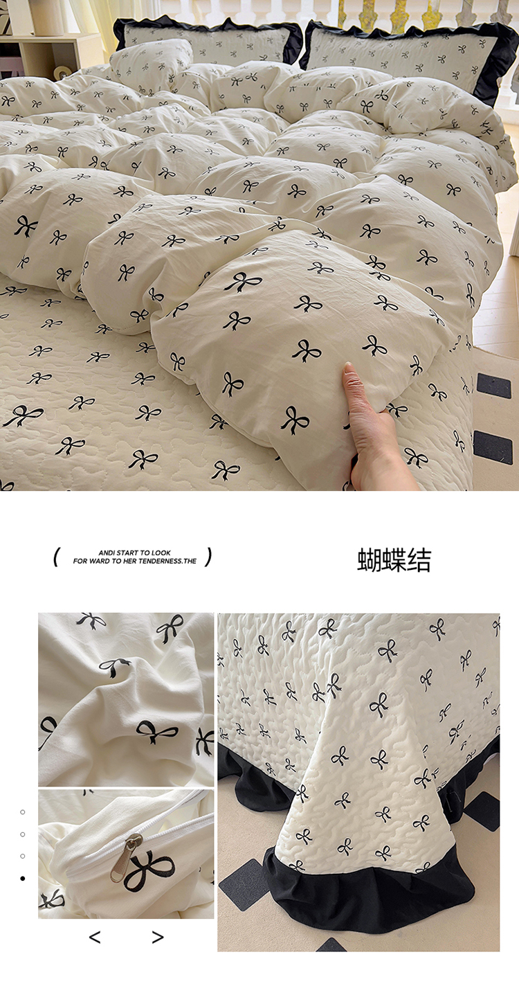 商品名称:(总)韩秀家纺 2025夹棉床盖四件套云朵棉泡泡棉糯感印花hbf水洗棉床盖三件套跑量款
