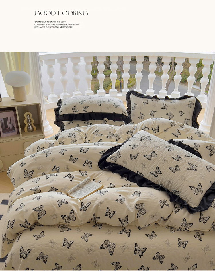 (总)韩秀家纺 2025夹棉床盖四件套云朵棉泡泡棉糯感印花hbf水洗棉床盖三件套跑量款