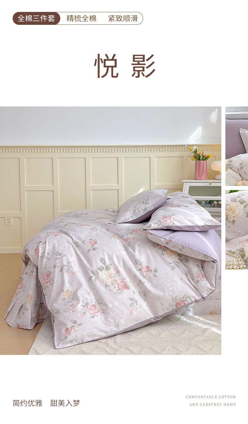 当前位置: 91家纺网 > 商品网购 > 床品套件 > 三件套 > 元元被芯 2025新款40支13372全棉印花全棉三件套 悦影