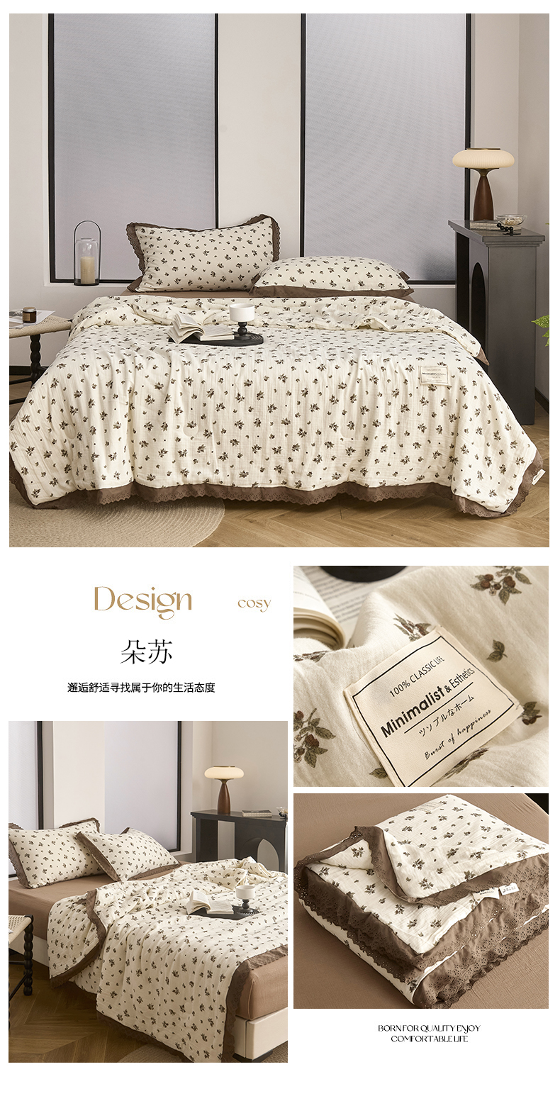 商品名称:大彩家居 2025新款全棉有氧皱皱双层纱被芯 朵苏