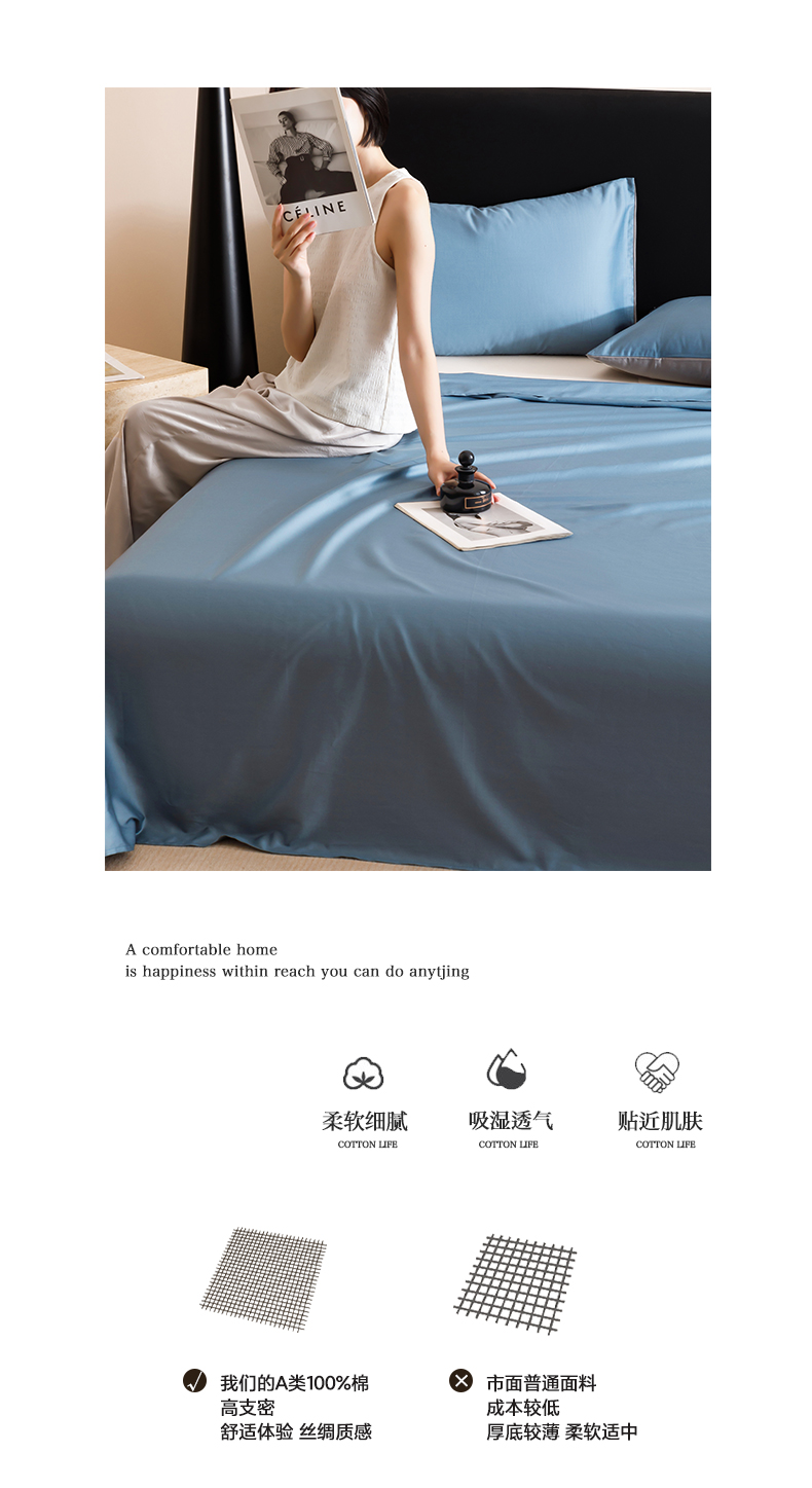 寐绸家纺 2025新款纯棉60支长绒棉床单系列 长绒棉床单-繁星蓝