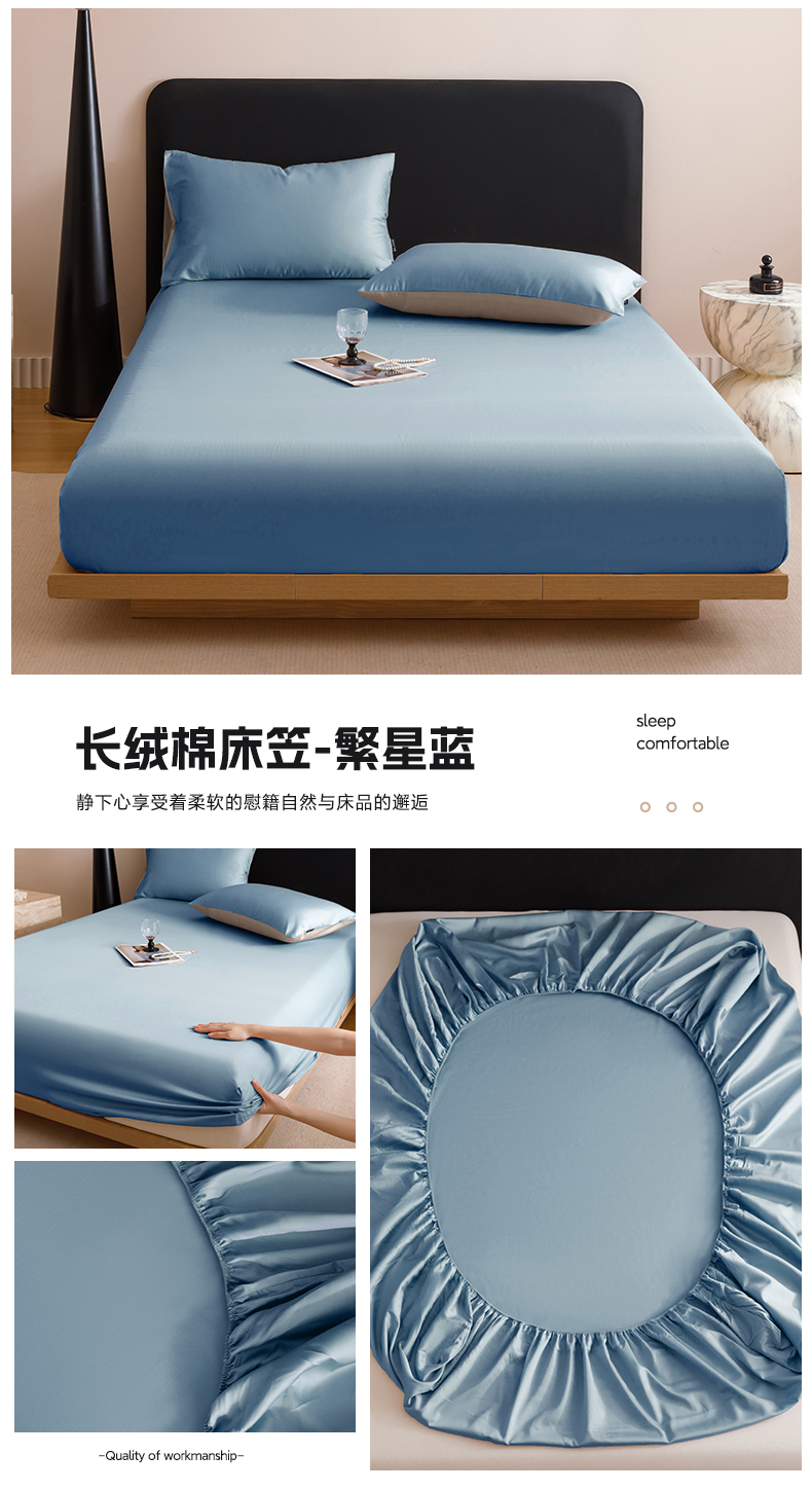 • 91家纺网 家纺一手货源 找家纺 寐绸家纺 2025新款纯棉60支长绒棉床笠系列 长绒棉床笠-繁星蓝