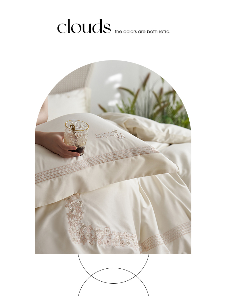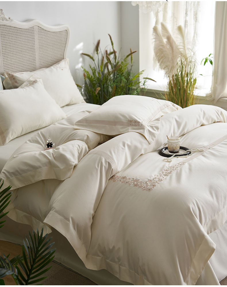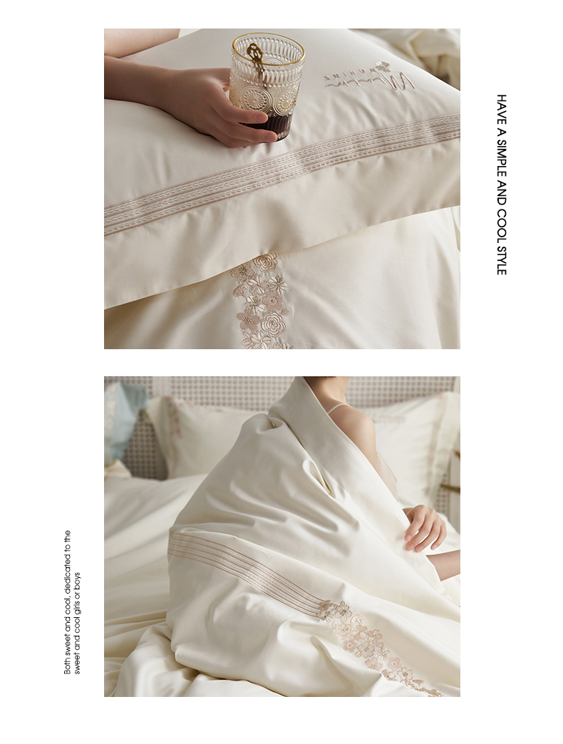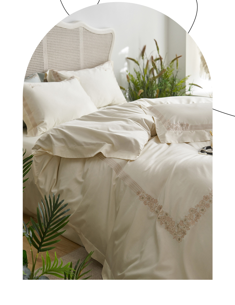 嗯呢家纺 2025新款A类全棉刺绣四件套 奶茶白