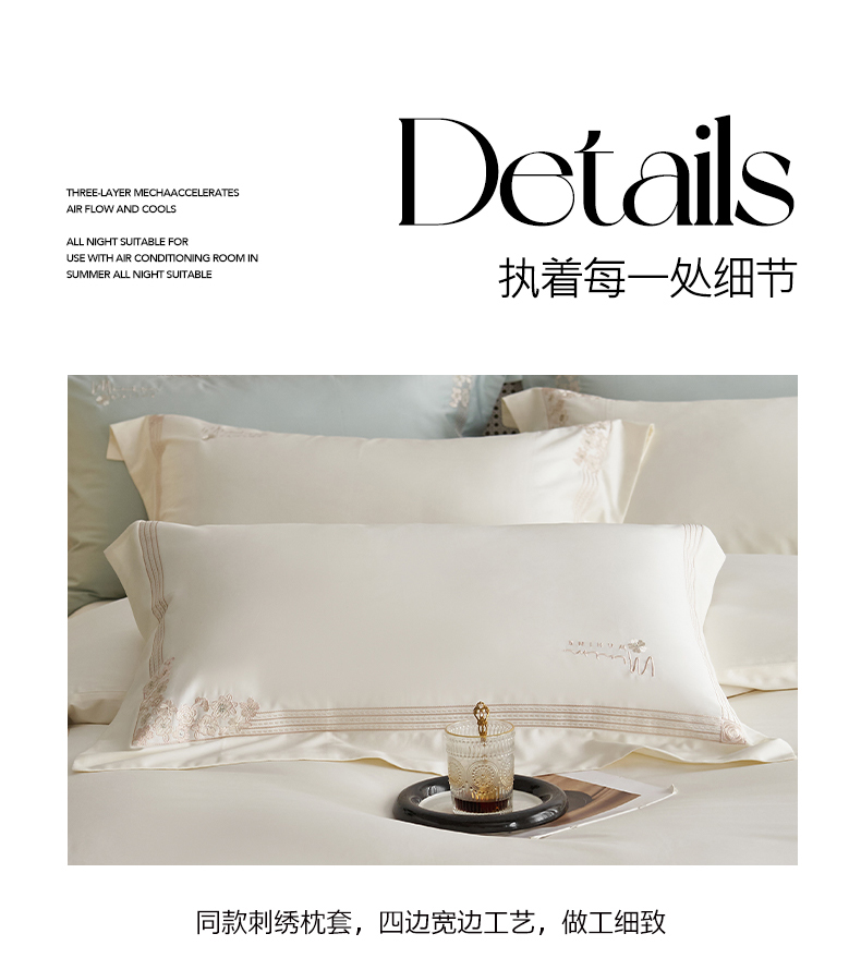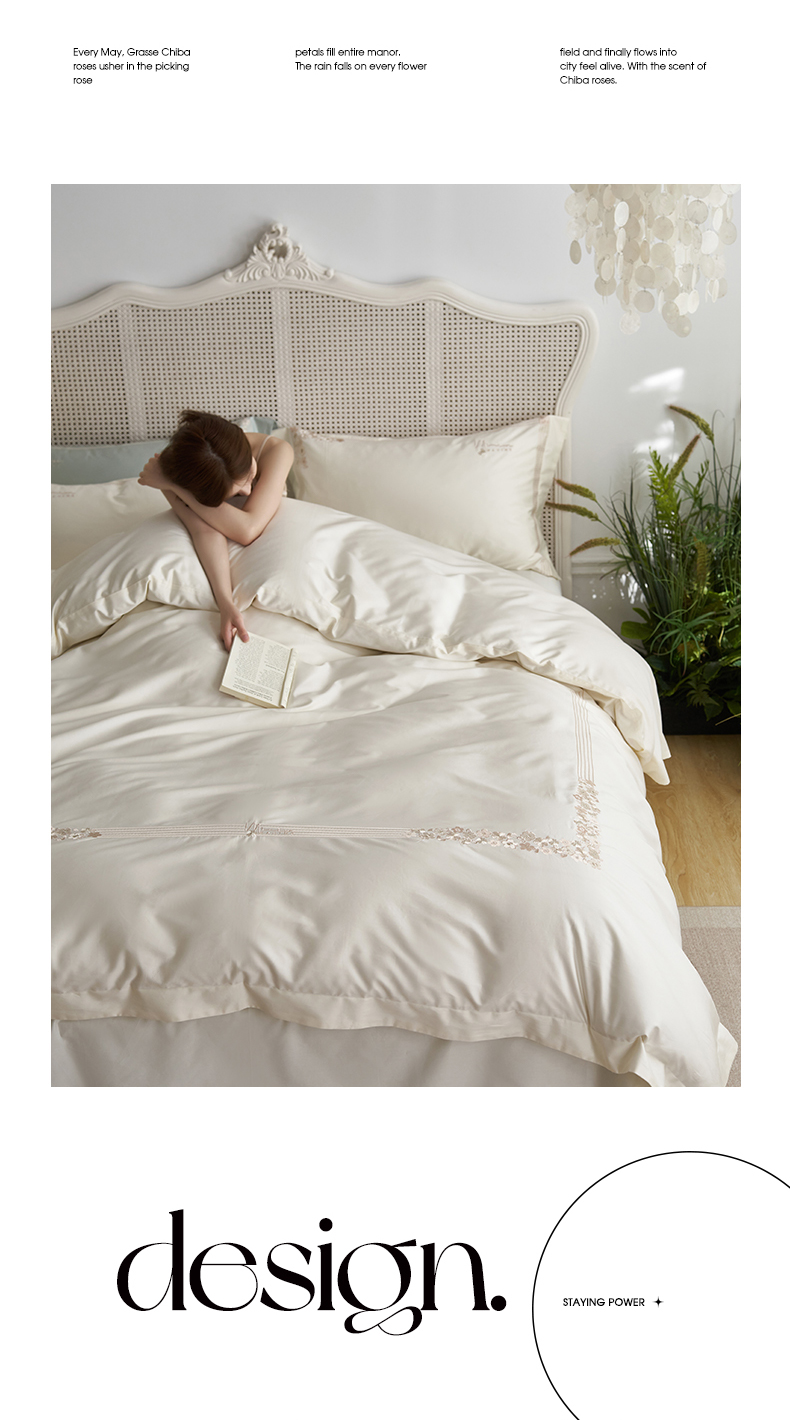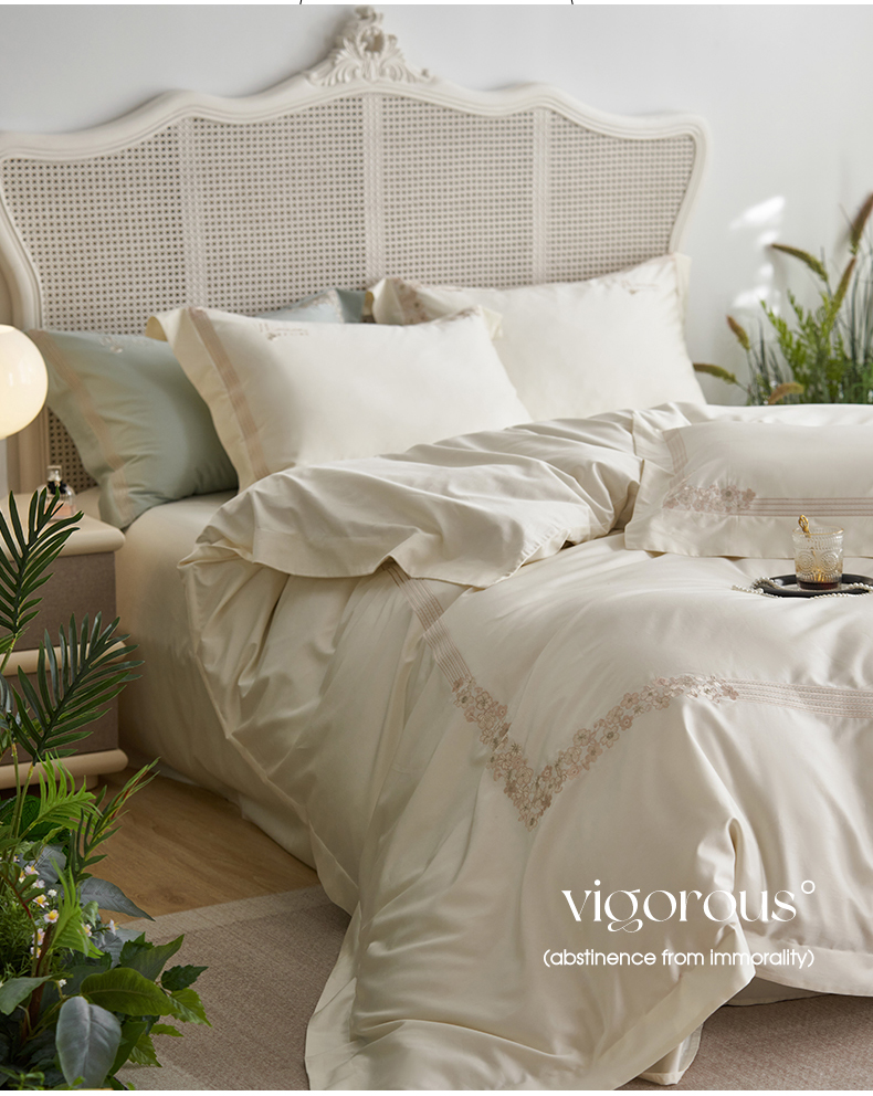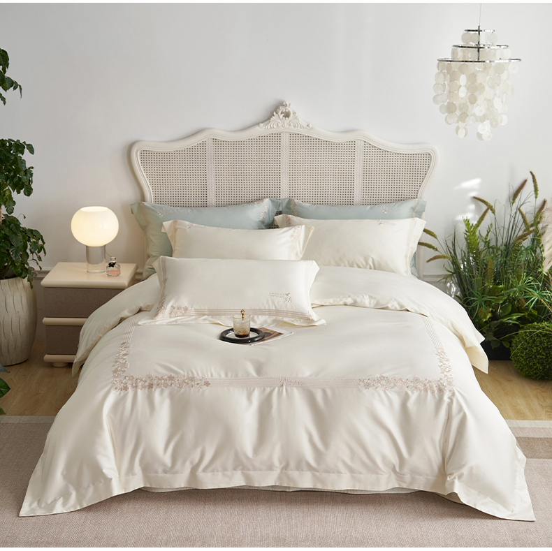嗯呢家纺 2025新款A类全棉刺绣四件套 奶茶白