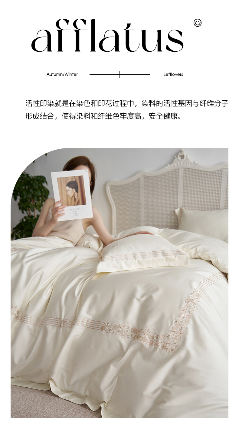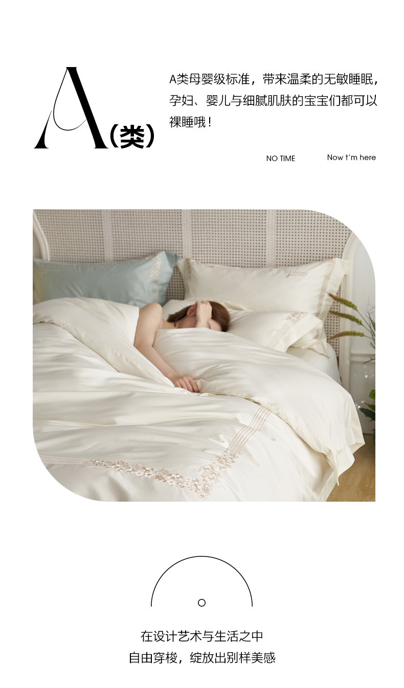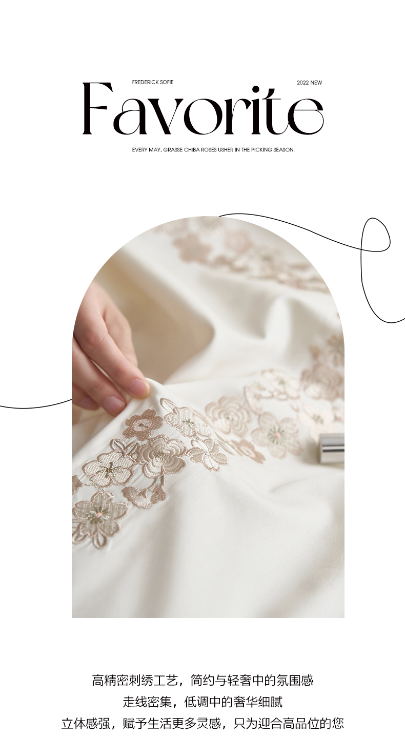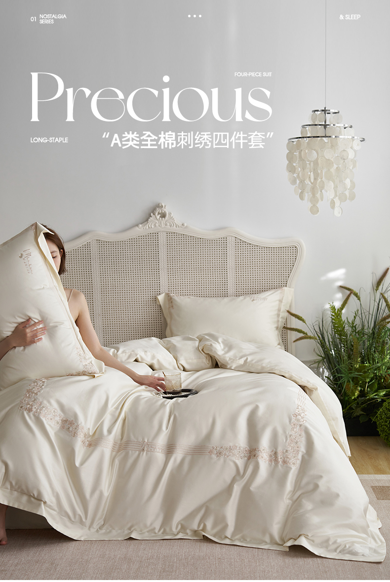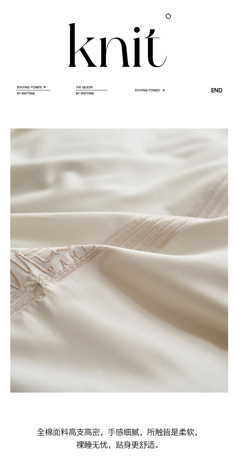 商品名称:嗯呢家纺 2025新款A类全棉刺绣四件套 奶茶白