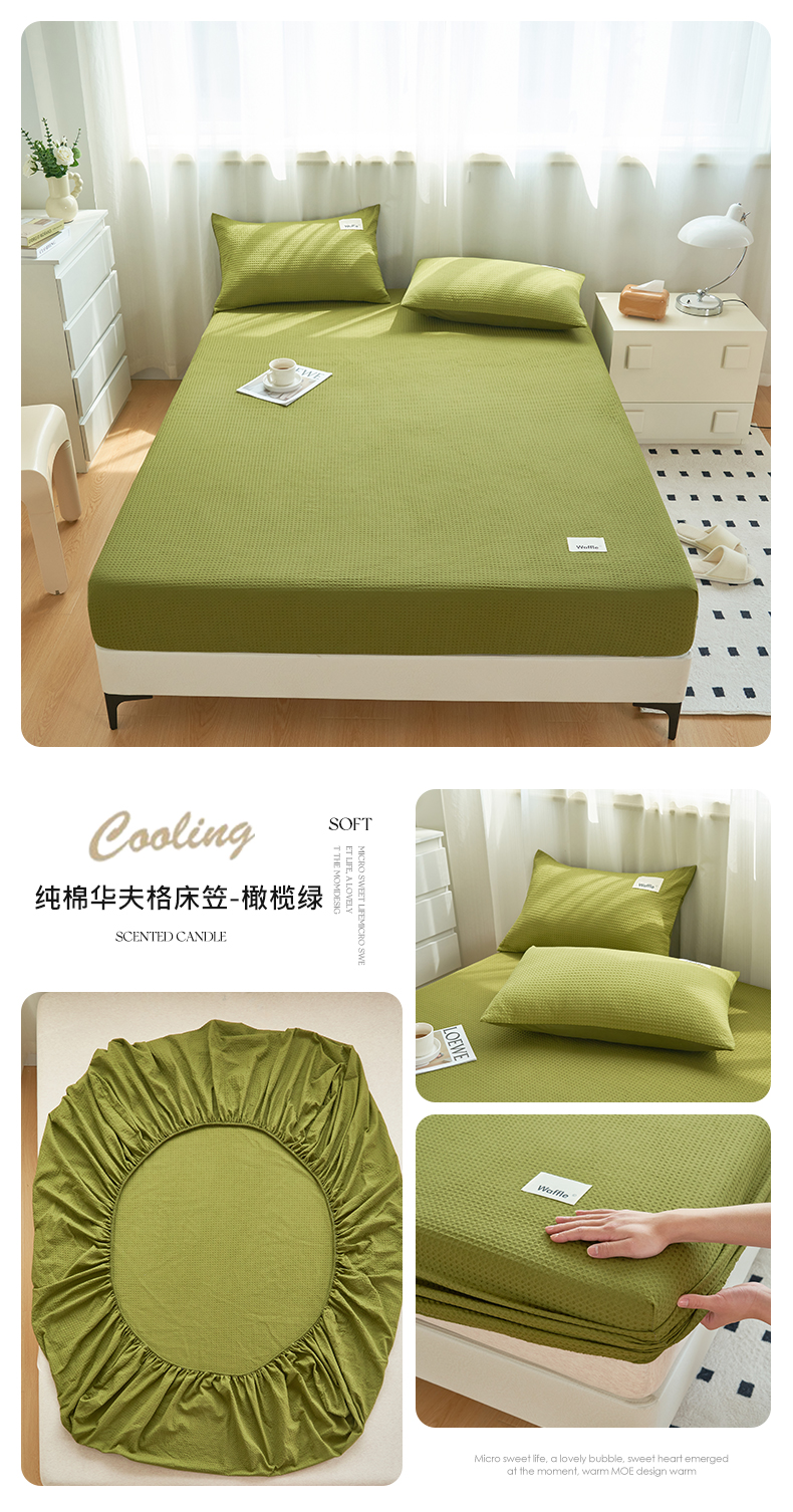 寐绸家纺 2025新款纯棉华夫格床笠 纯棉华夫格床笠-黄绿