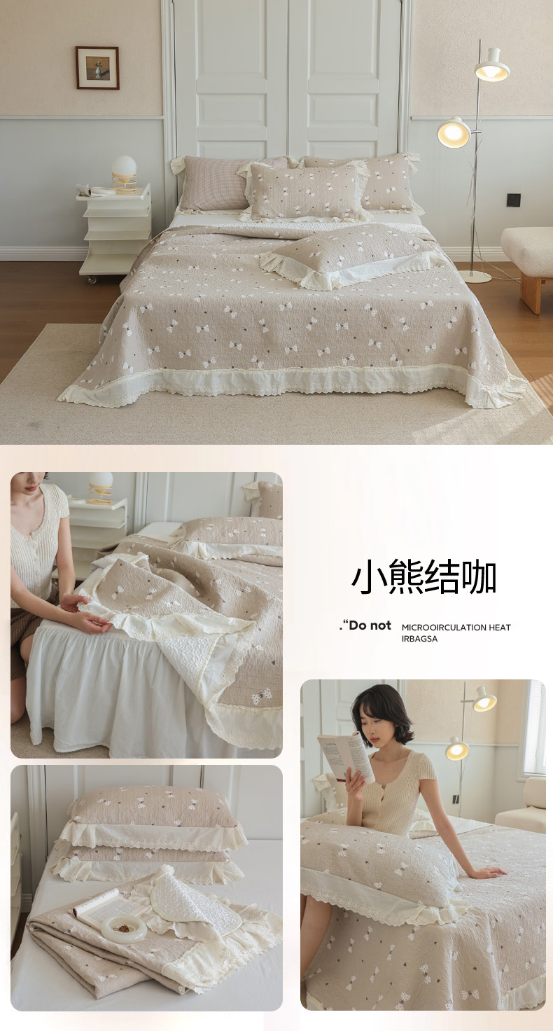 商品名称:万盛家纺 2025新款全棉水洗花边床盖三件套 小熊结咖
