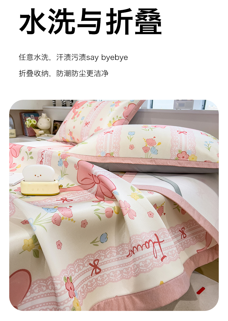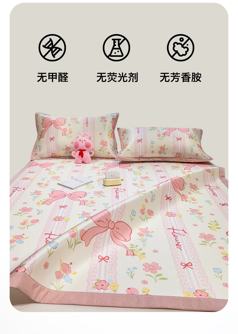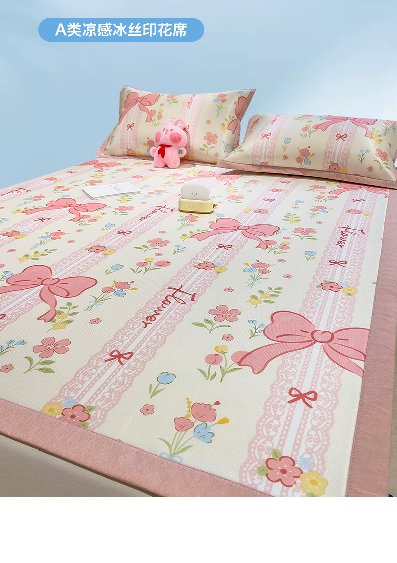 商品名称:兄弟坊 2025新款数码小清新印花冰丝席 蝴蝶结日记