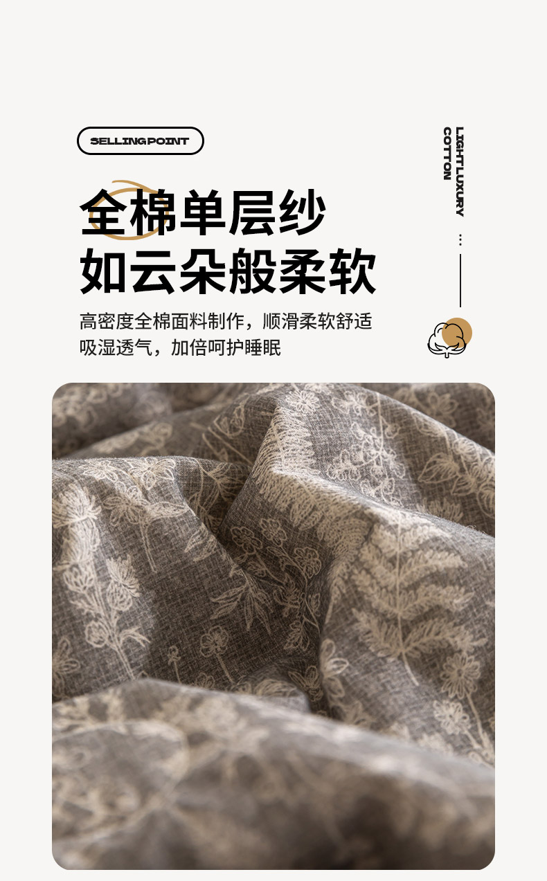 商品名称:吾诺 2025 全棉印花单层纱大豆夏被四件套夏凉被空调被子被芯全棉夏被 柔美