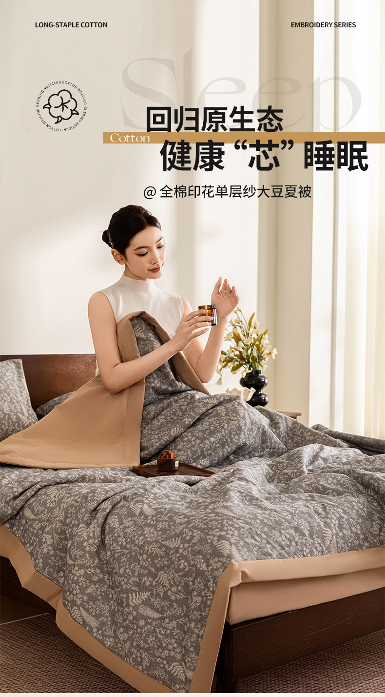 吾诺 2025 全棉印花单层纱大豆夏被四件套夏凉被空调被子被芯全棉夏被 柔美