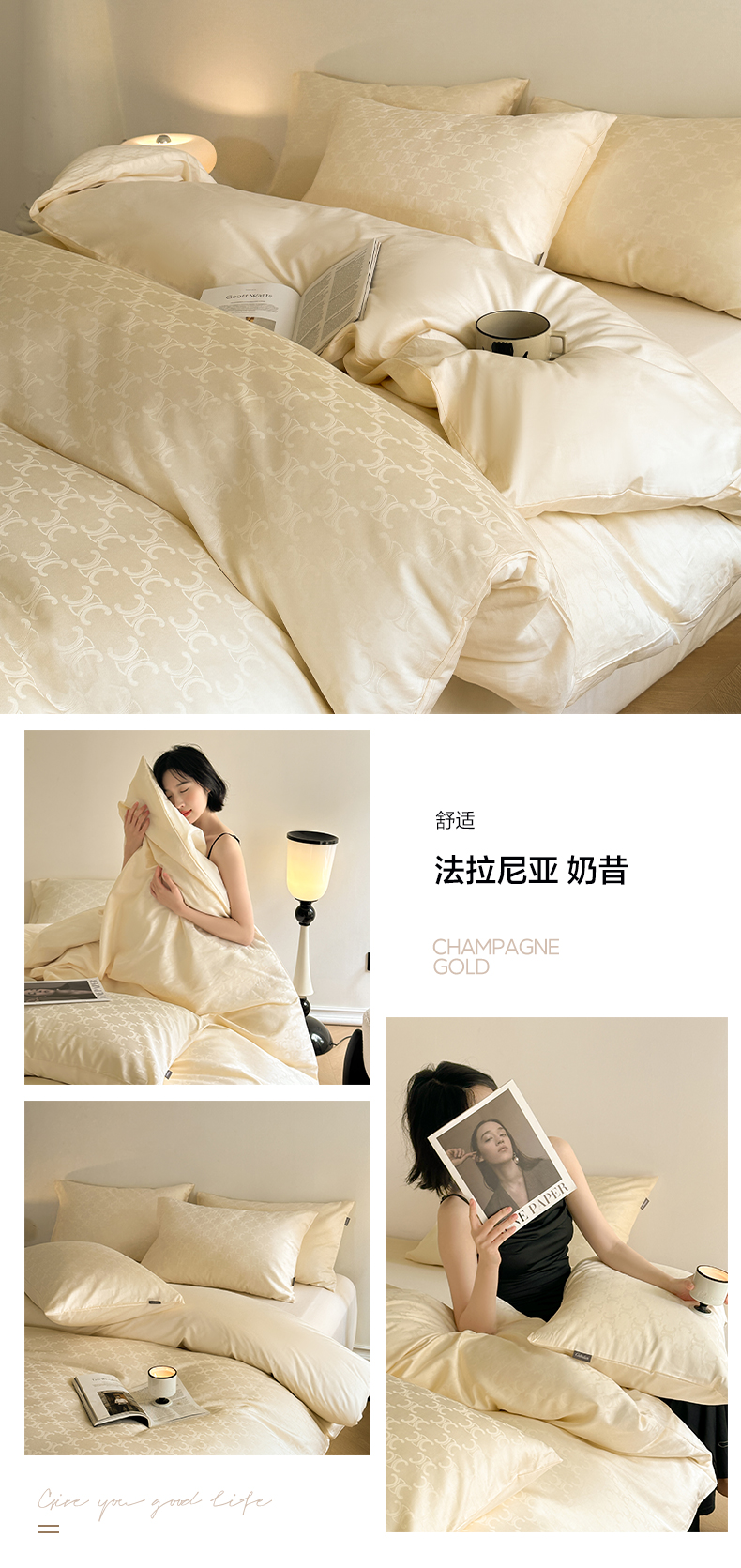 当前位置: 91家纺网 > 商品网购 > 床品套件 > 四件套 > 全棉普通四件套 > 2025新款60s长绒棉提花四件套系列1 法拉尼亚-奶昔
