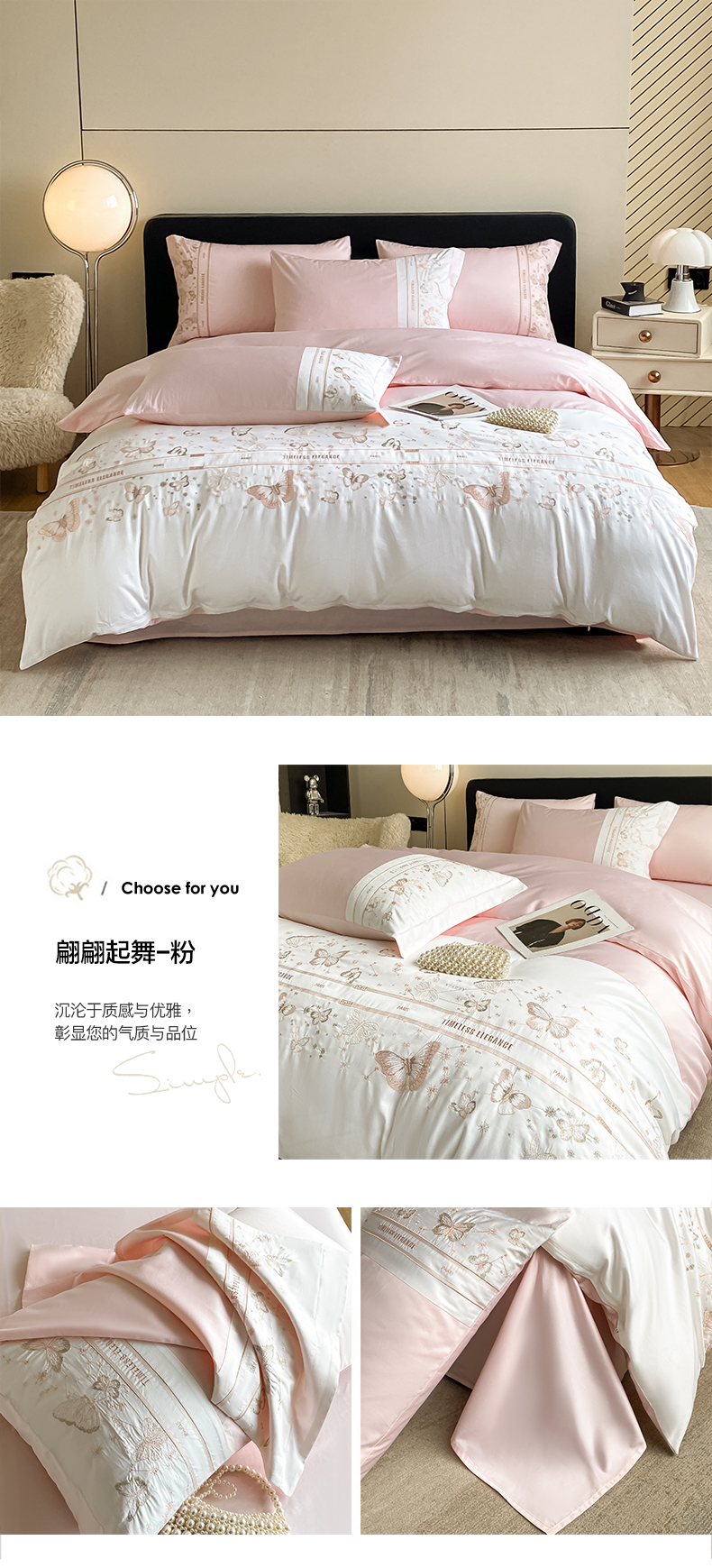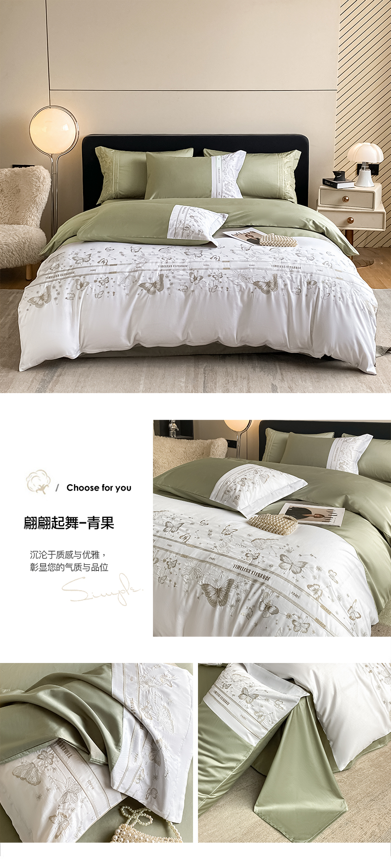 商品名称:(总)卡巴伦2025新款全棉刺绣拼接款四件套翩翩起舞