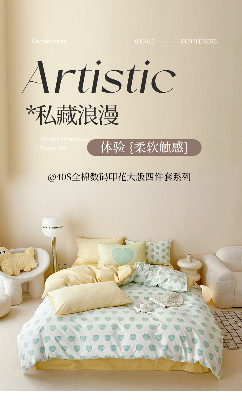 嘉汀兰 2025新款40s全棉纯棉数码印花大版四件套系列 恋爱心语