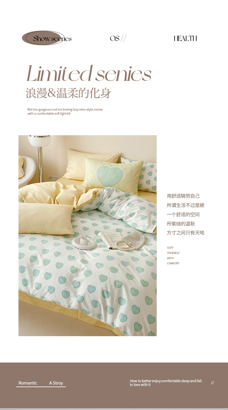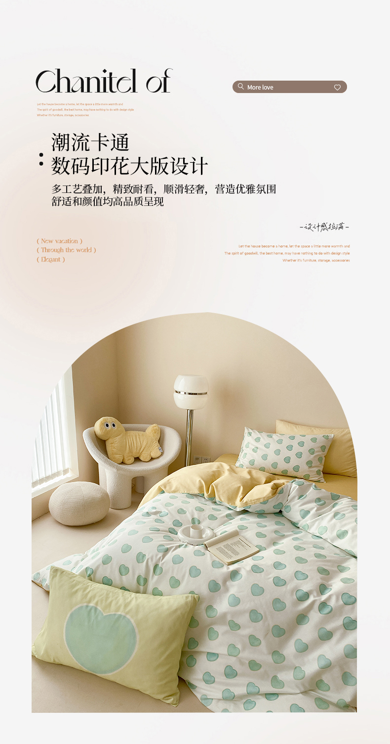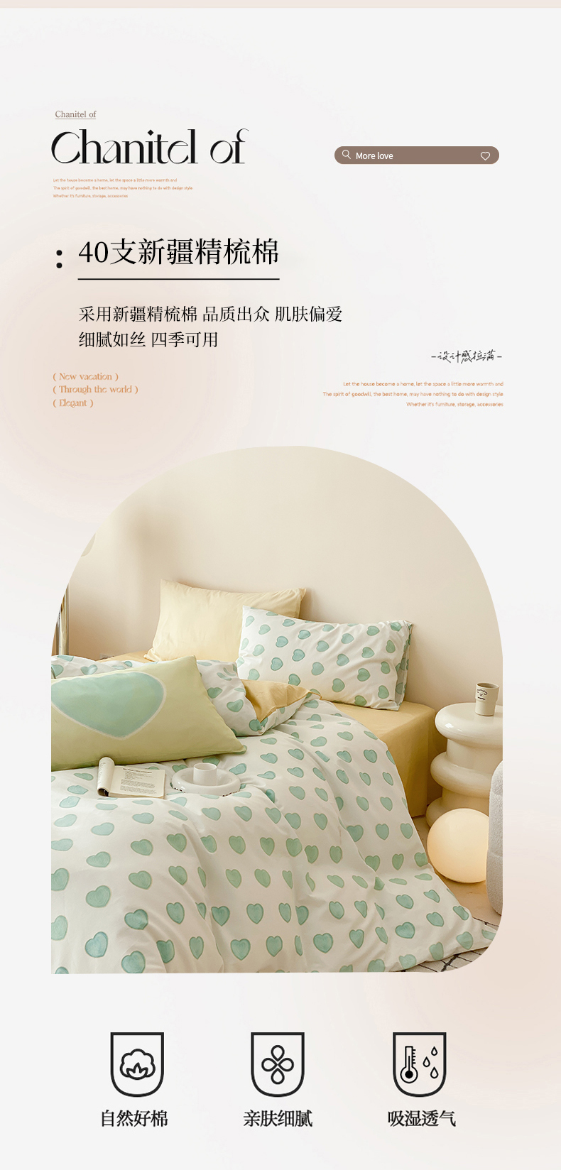 商品名称:嘉汀兰 2025新款40s全棉纯棉数码印花大版四件套系列 恋爱心语