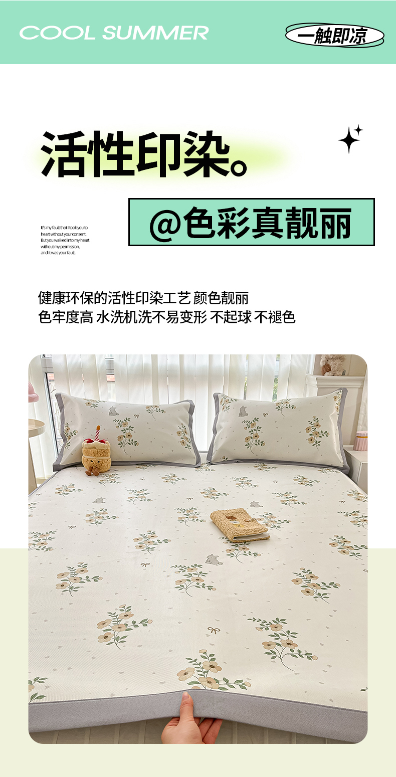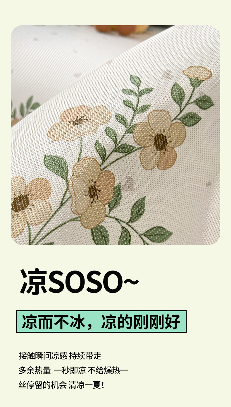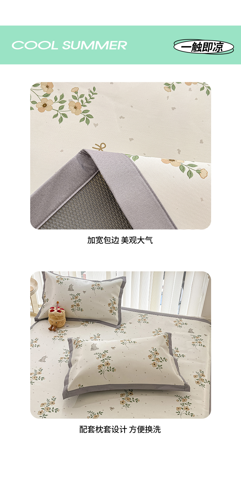 商品名称:川悦生活 2025新款600D立体宽边冰丝印花凉席 春日花钿