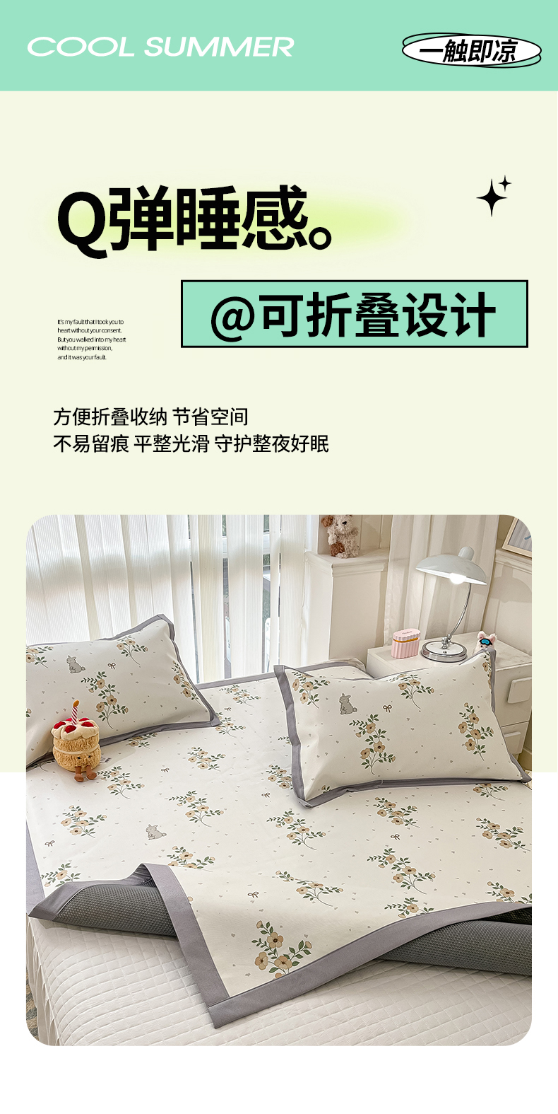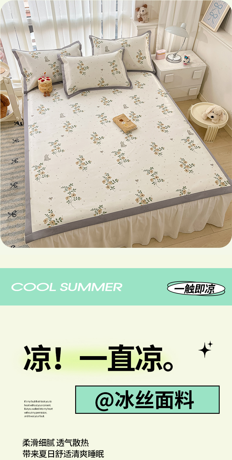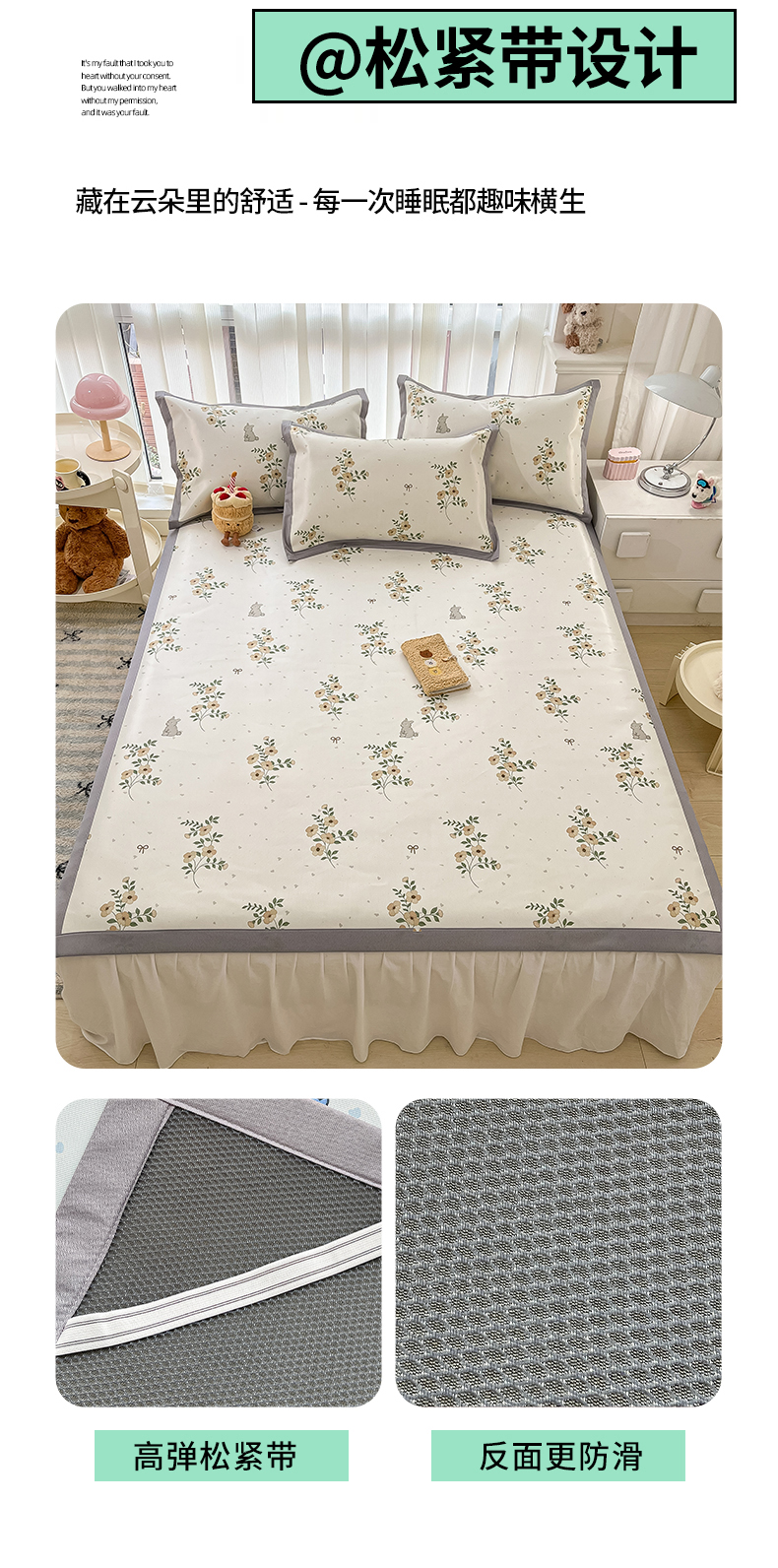 商品名称:川悦生活 2025新款600D立体宽边冰丝印花凉席 春日花钿