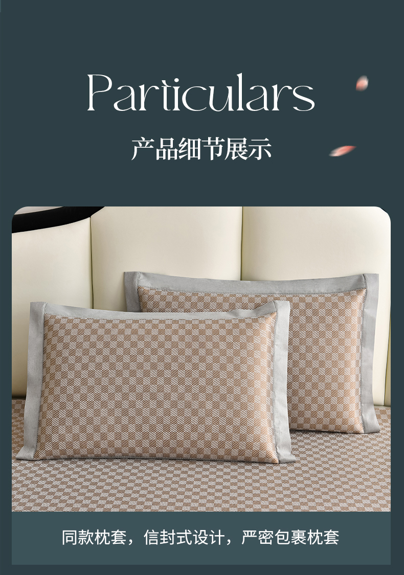 商品名称:小牛席业 2025新款棋盘格-熊猫凉感冰丝席系列(床笠款) 咖色