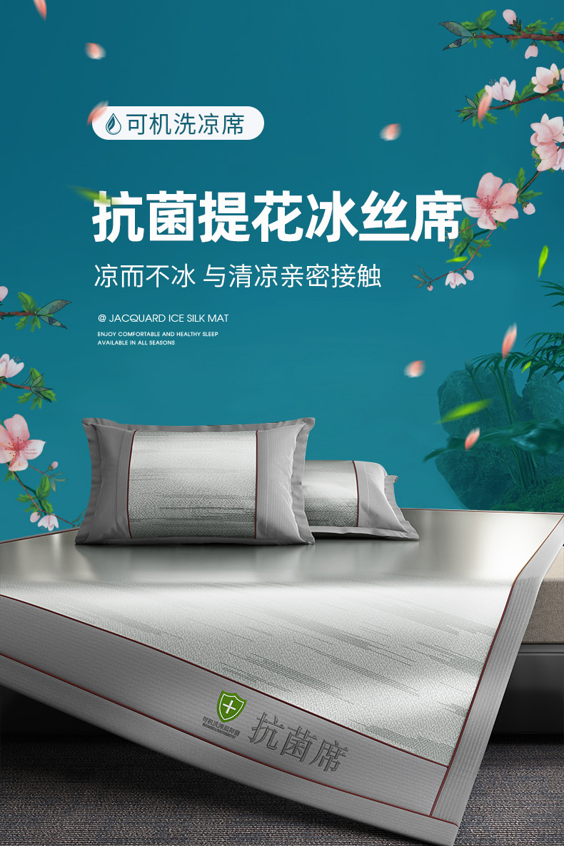 (总)小牛席业 2025新款A加厚款-可机洗抗菌提花冰丝席凉席藤席冰藤席冰丝席竹席草席空调席乳胶席豆豆席