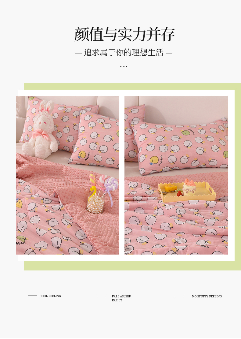 商品名称:经年 2025新款A类凉感丝豆豆夏被 苹果-粉