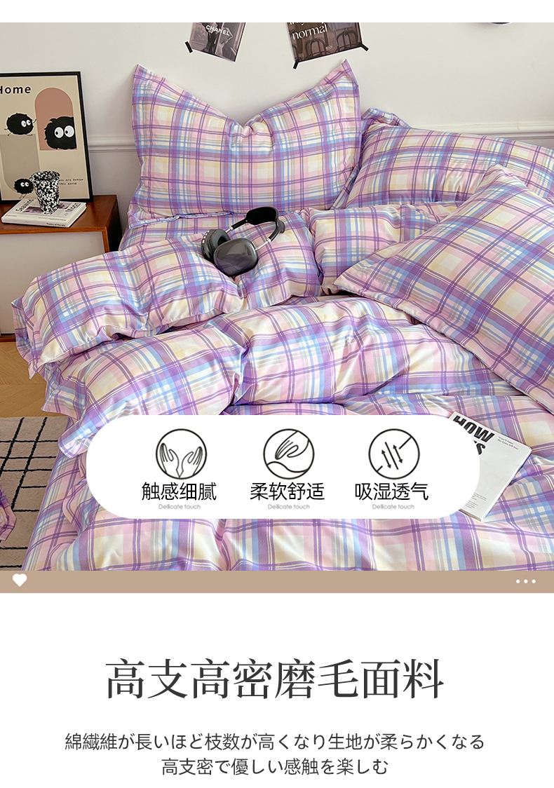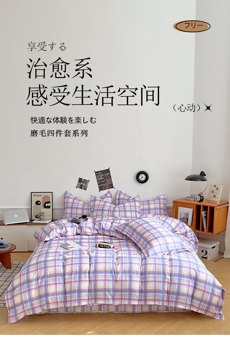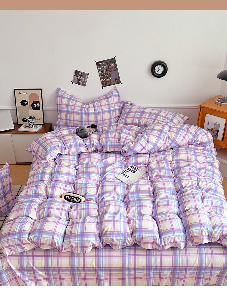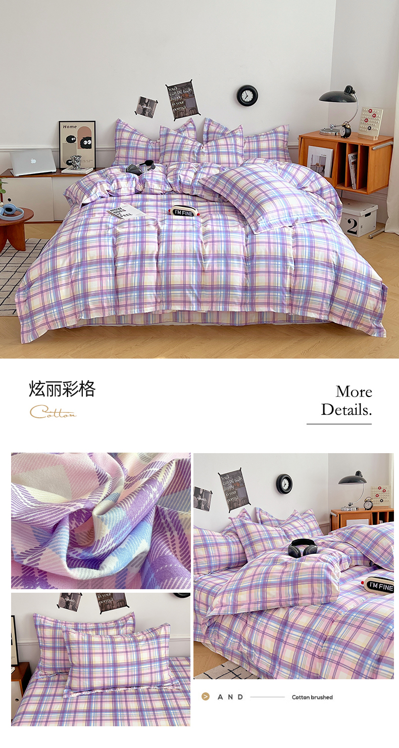当前位置: 91家纺网 > 商品网购 > 床品套件 > 四件套 > 普通磨毛四件套 > 罗菲尼酒店用品 2025新款磨毛亲肤飞边款四件套 炫丽彩格