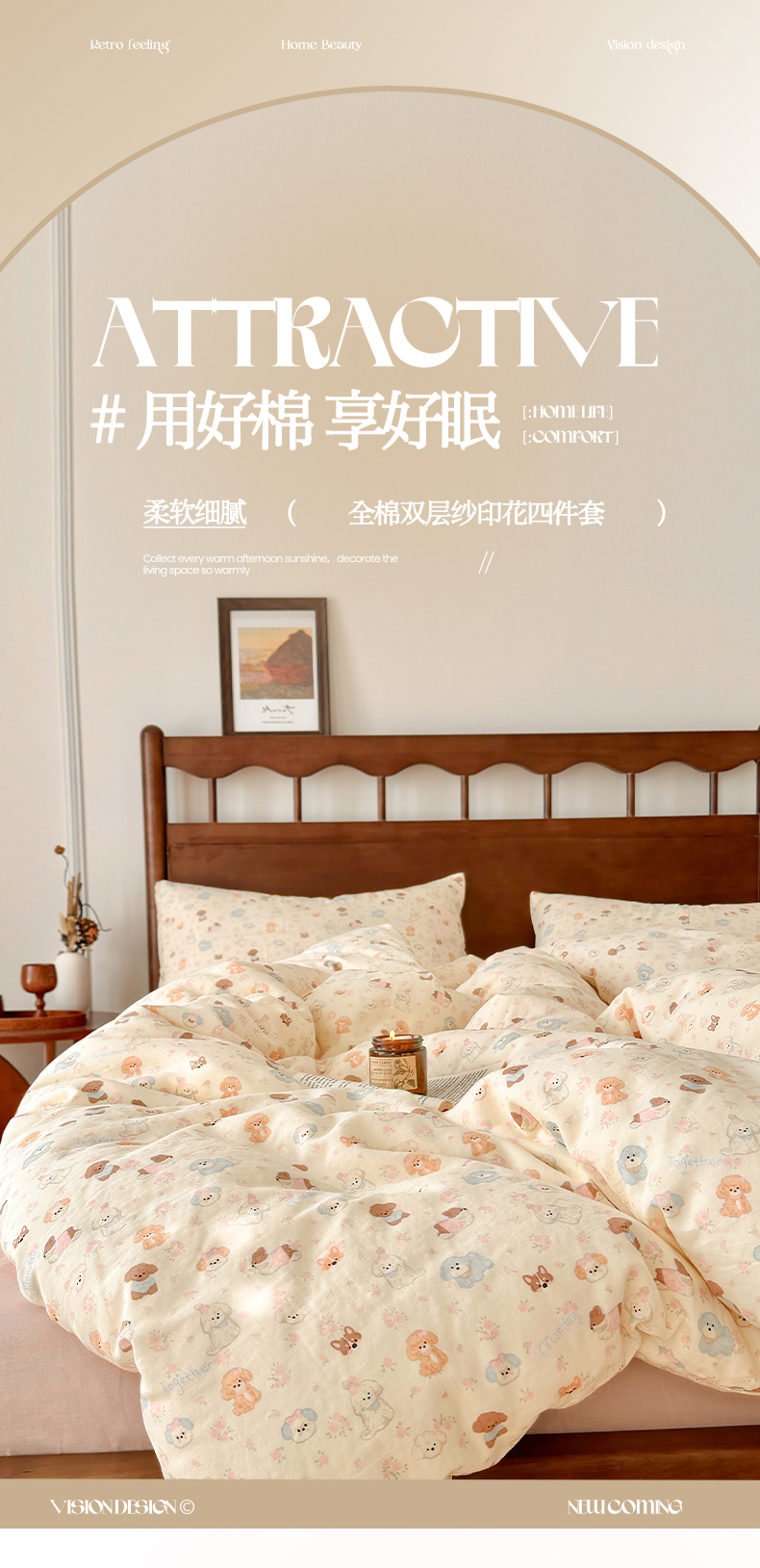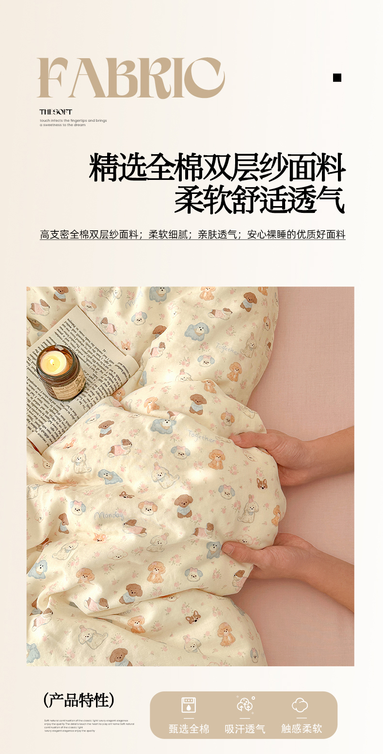 当前位置: 91家纺网 > 商品网购 > 床品套件 > 四件套 > 全棉普通四件套 > 吉象2025新款全棉双层纱四件套 泡芙狗狗