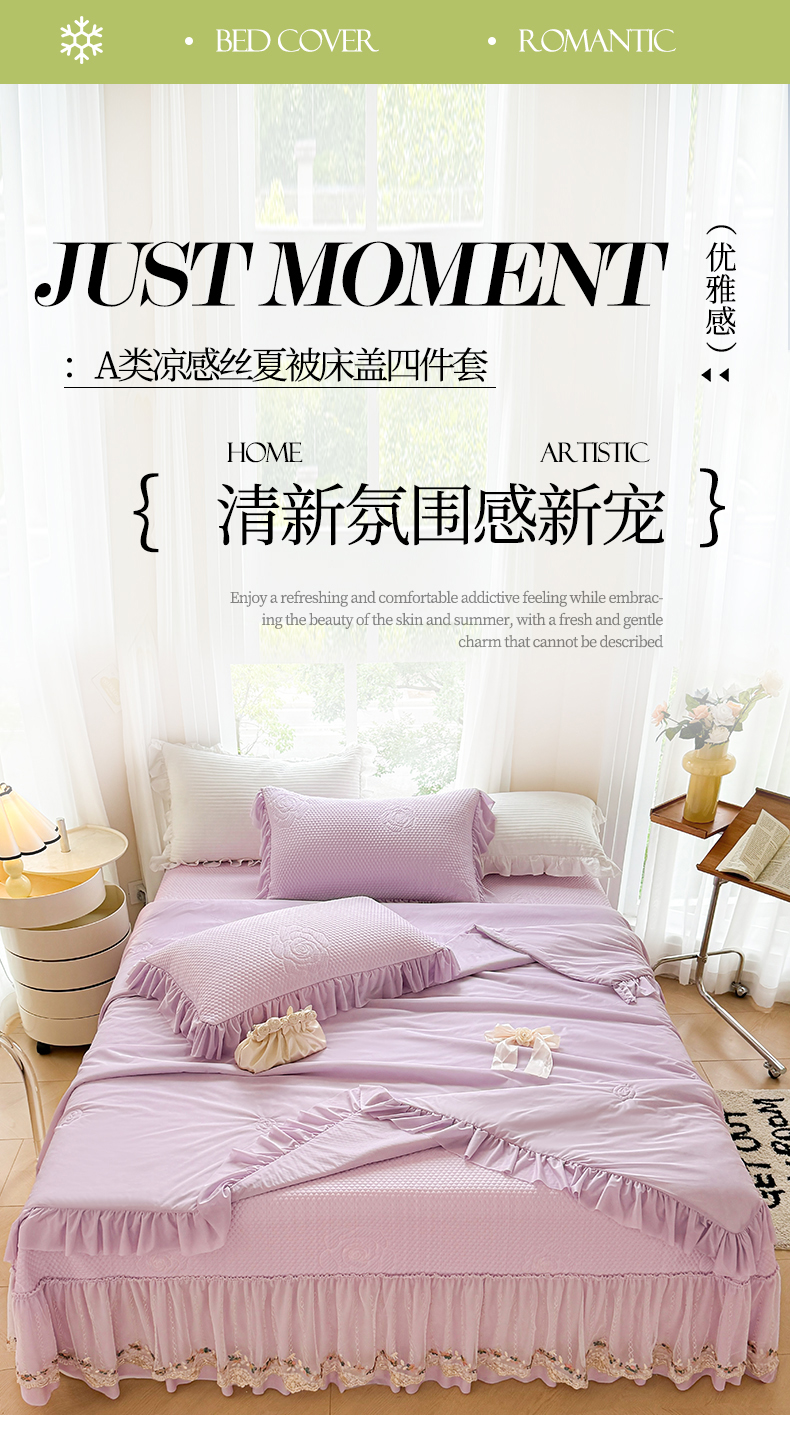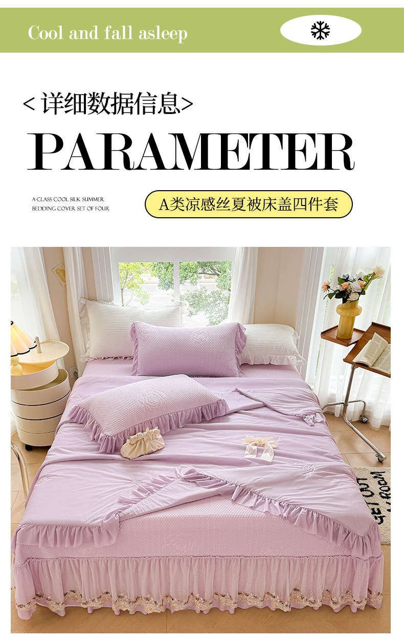 商品名称:恒爱家纺 2025新款冰丝国色天香夏被床盖四件套 优雅紫