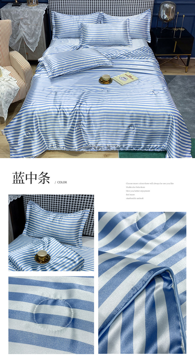 当前位置: 91家纺网 > 商品网购 > 床品套件 > 四件套 > 夏被四件套 > 经年 2025新款条纹丝绸冰丝夏被 蓝中条-夏被