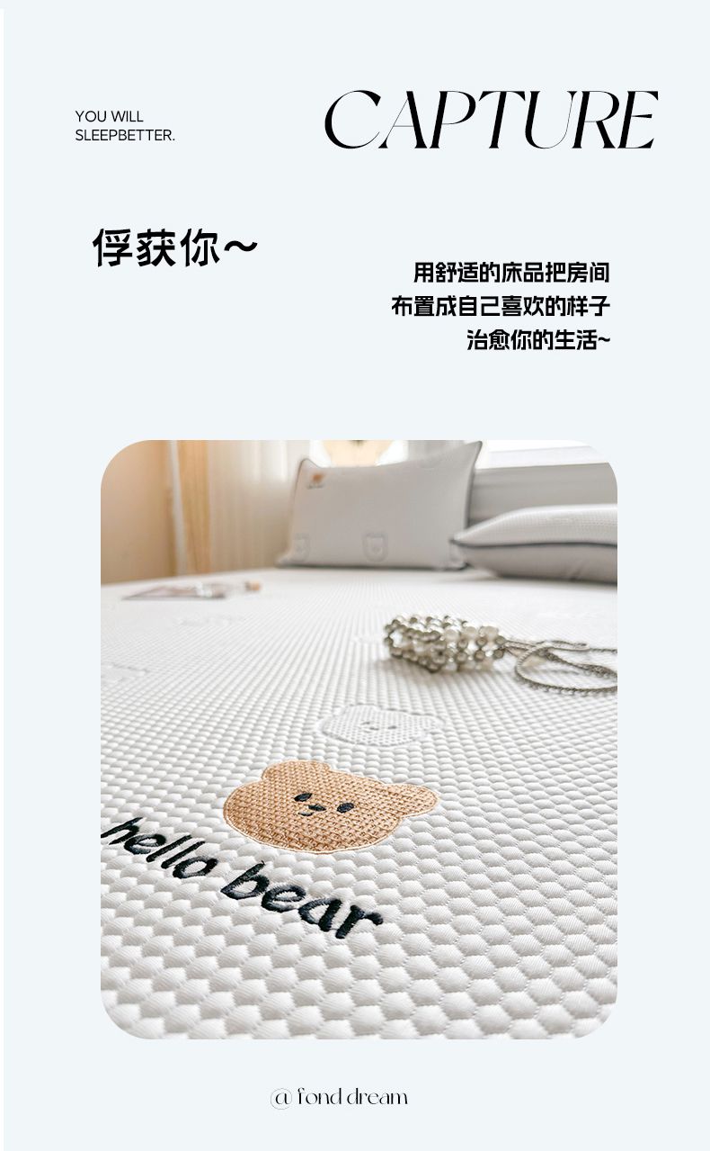 商品名称:首尔家纺 2025新款凉豆豆席刺绣款冰丝席 小灰熊