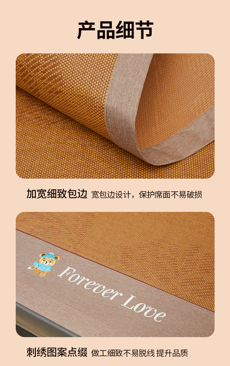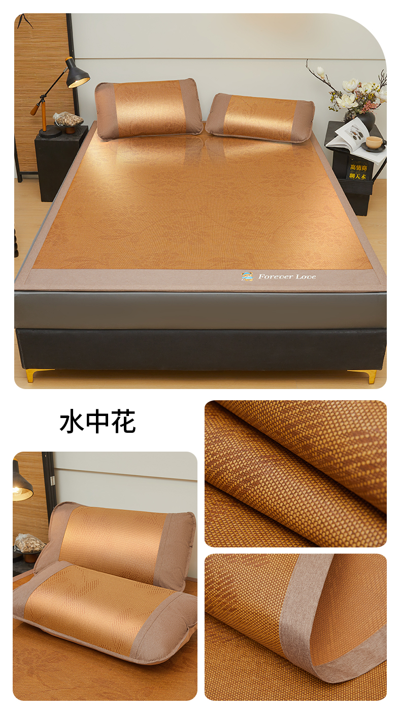 (总)琪琪阁 2026新款冰藤三明治凉席,小米花-灰色,小米花-金色,小米花-绿色,星星-浅灰,星星-深咖,星星-水绿,星星-雾蓝,星星-樱粉