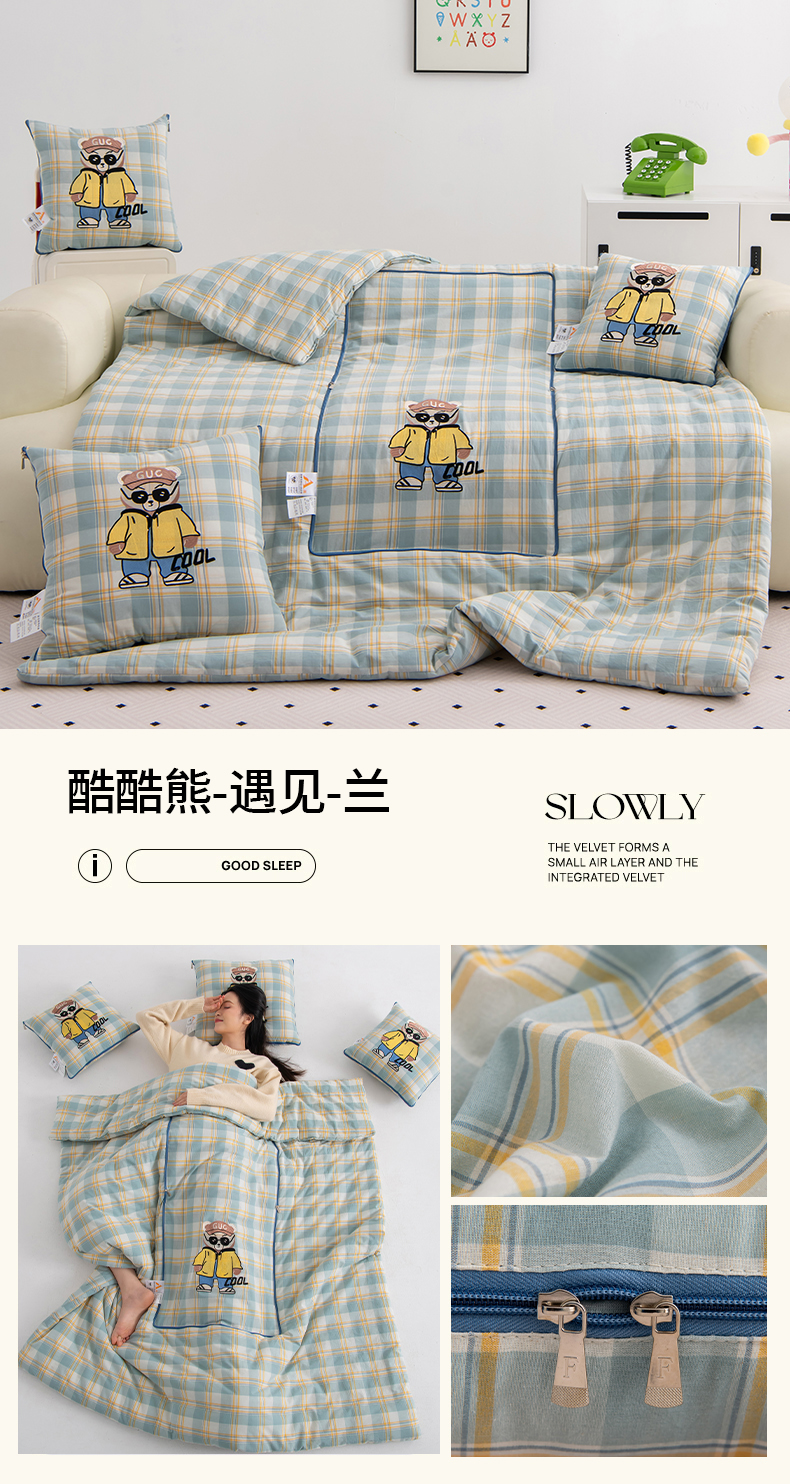商品名称:吉利家居 2025新款全棉纯棉多功能抱枕被--酷酷熊 酷酷熊-遇见-兰