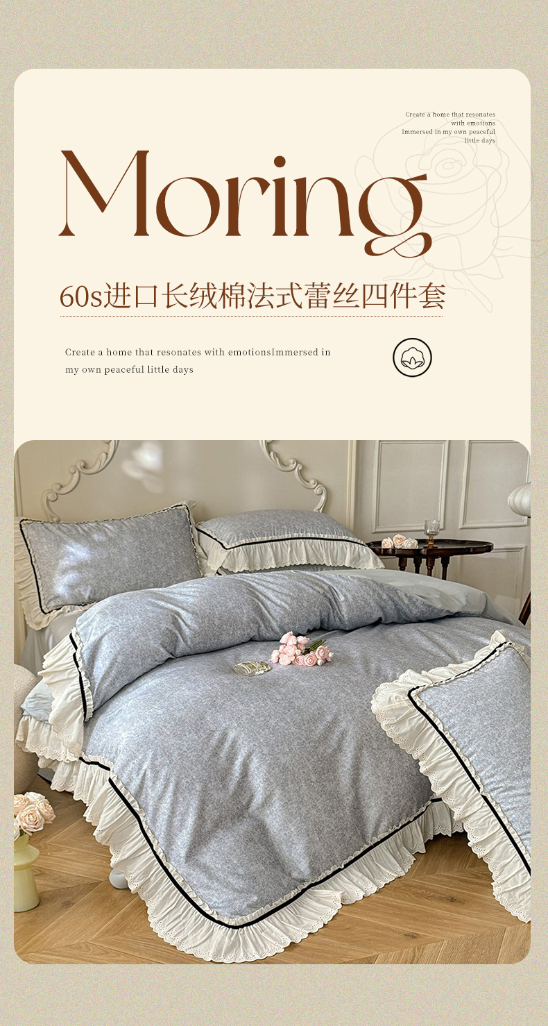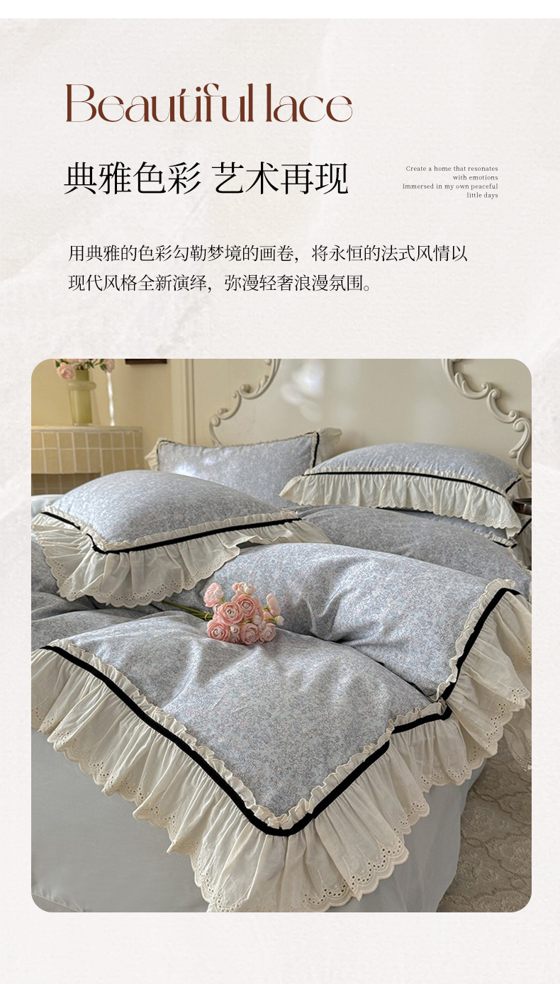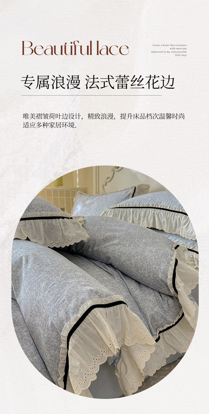 巧玲珑 2025新款法式蕾丝印花60支进口长绒棉四件套 花枝曼舞-兰