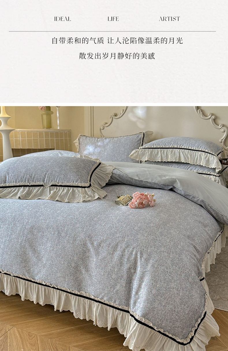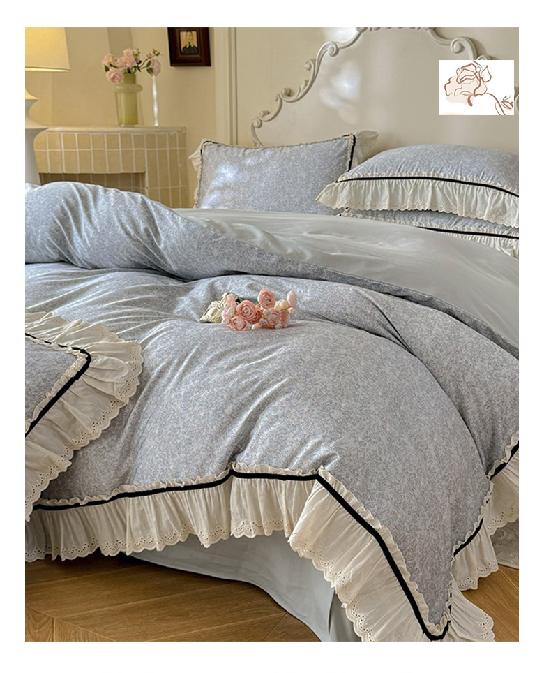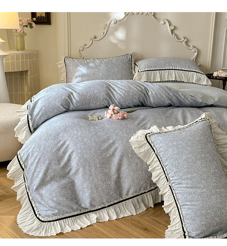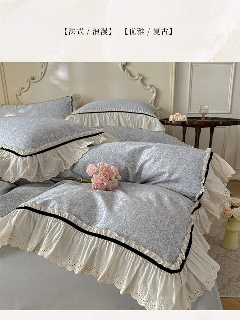 巧玲珑 2025新款法式蕾丝印花60支进口长绒棉四件套 花枝曼舞-兰