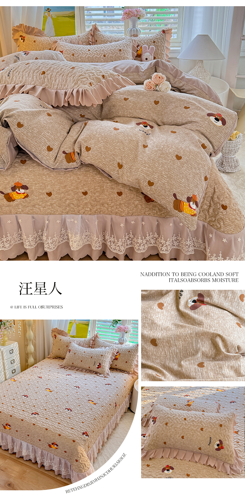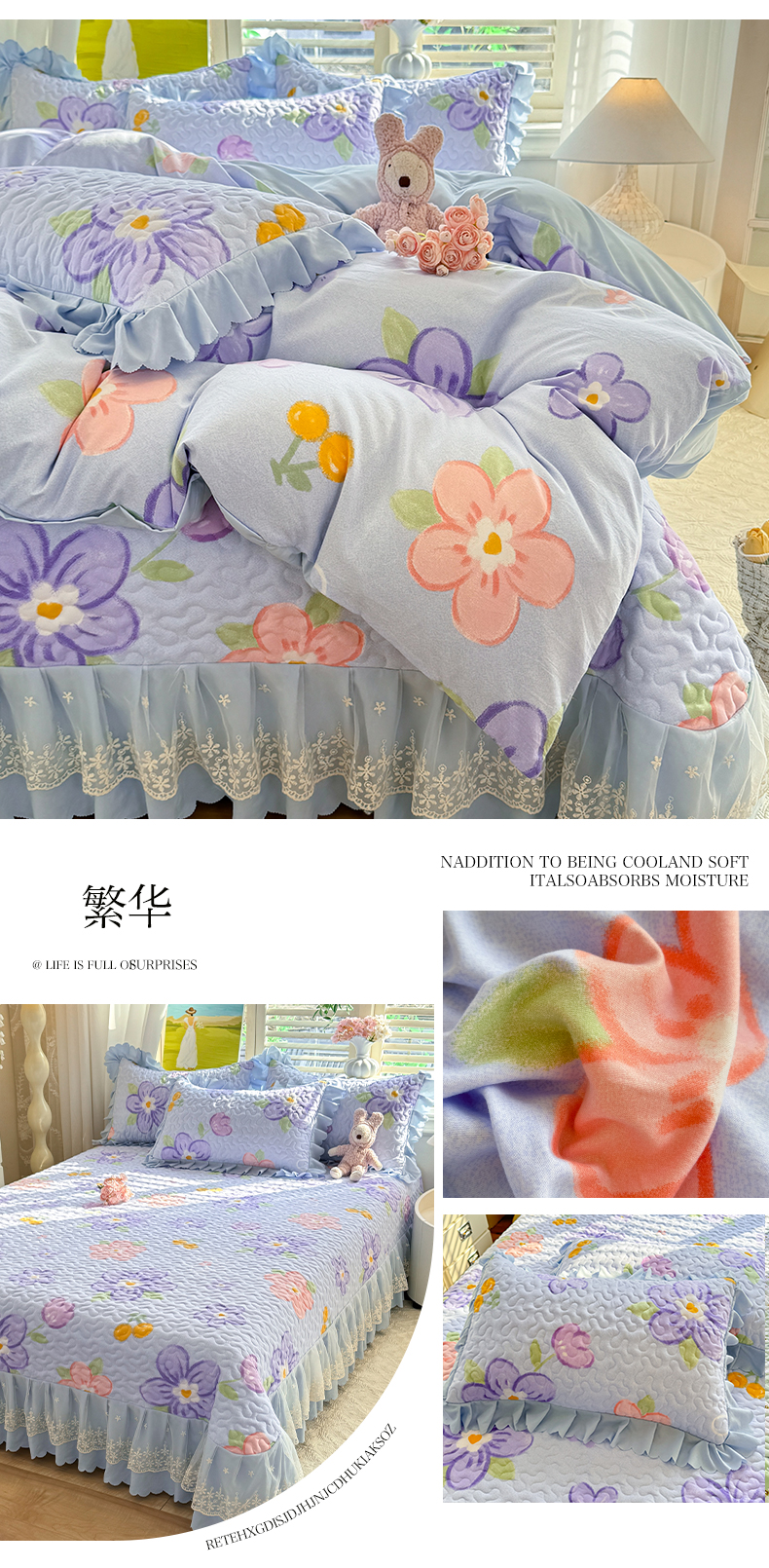 加大2.0米床盖四件套:被套220x240cm+床盖270x260cm+2只枕套 | ¥85.00 |