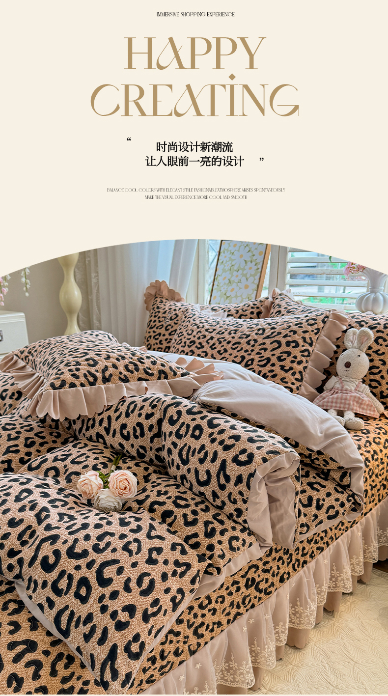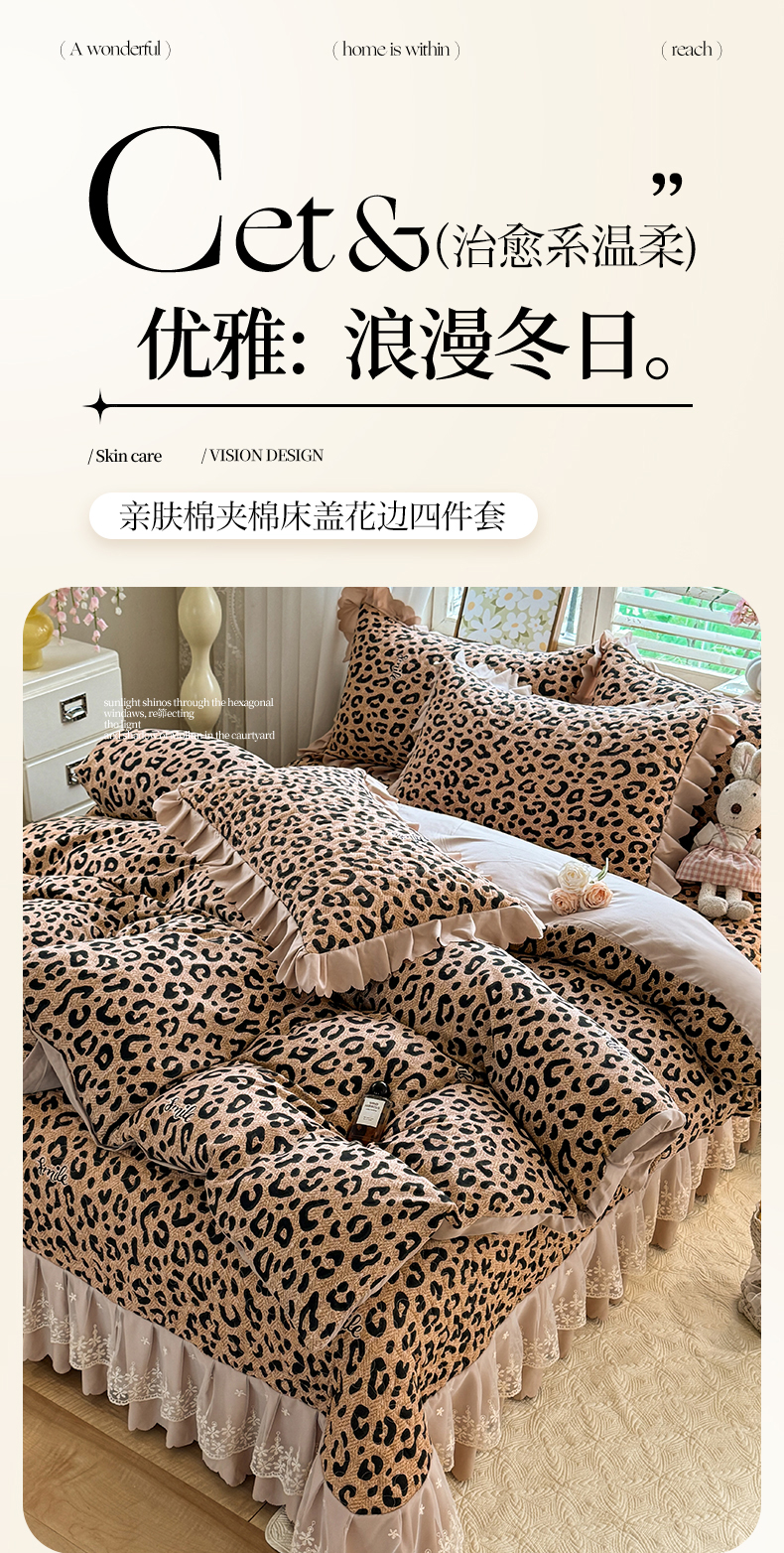 当前位置: 91家纺网 > 商品网购 > 床品套件 > 四件套 > 其它四件套 > 九诺家纺 2025新款韩式云朵棉印花床盖四件套 轻奢豹纹