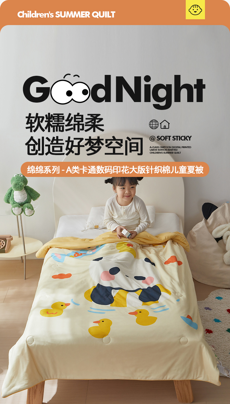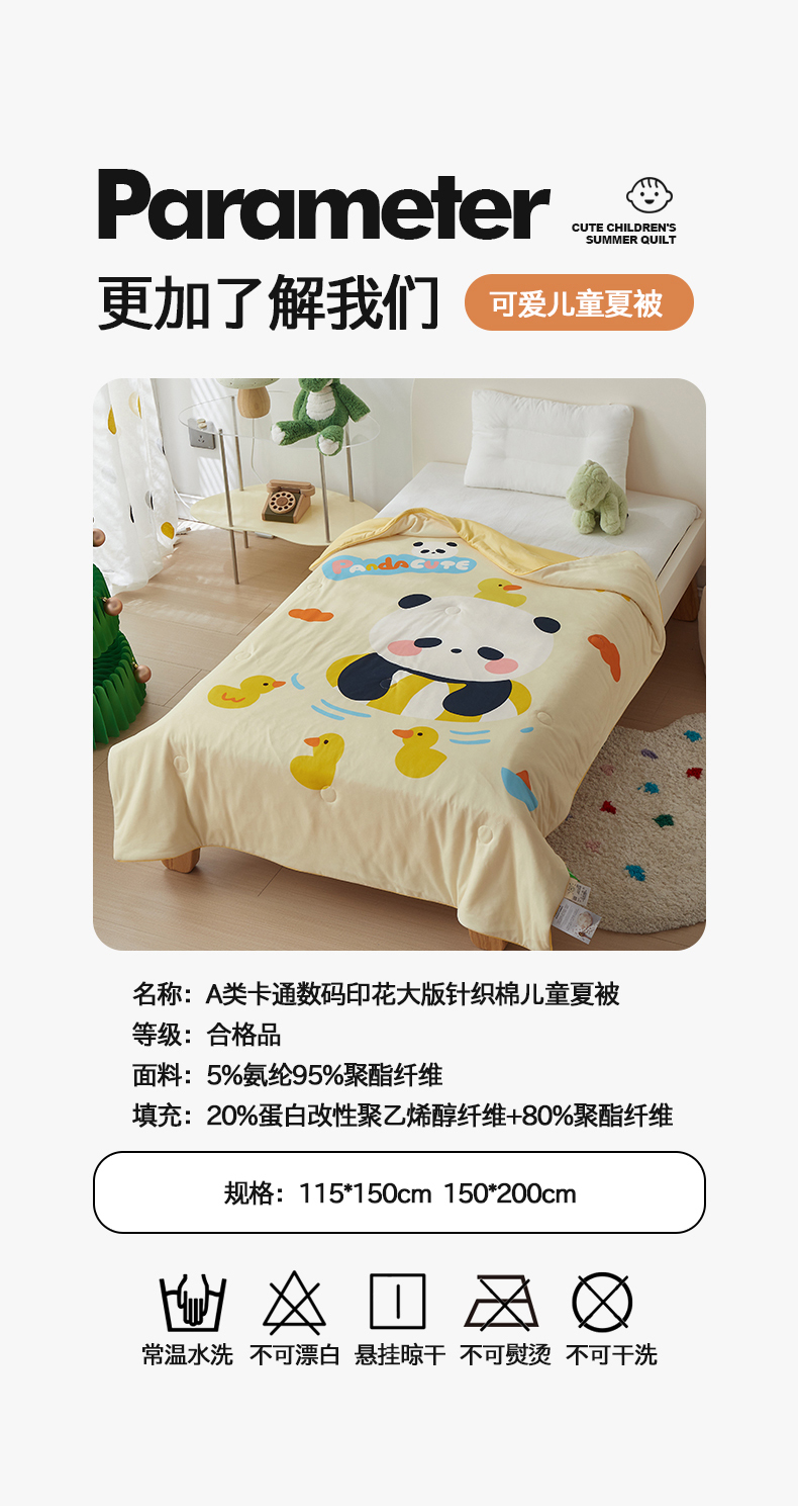 商品名称:荷马之梦 2025新款卡通数码印花大版针织棉儿童夏被-绵绵系列 童趣熊