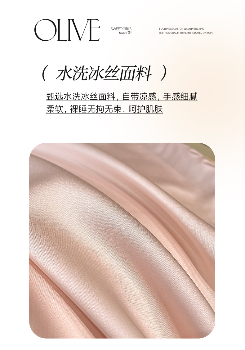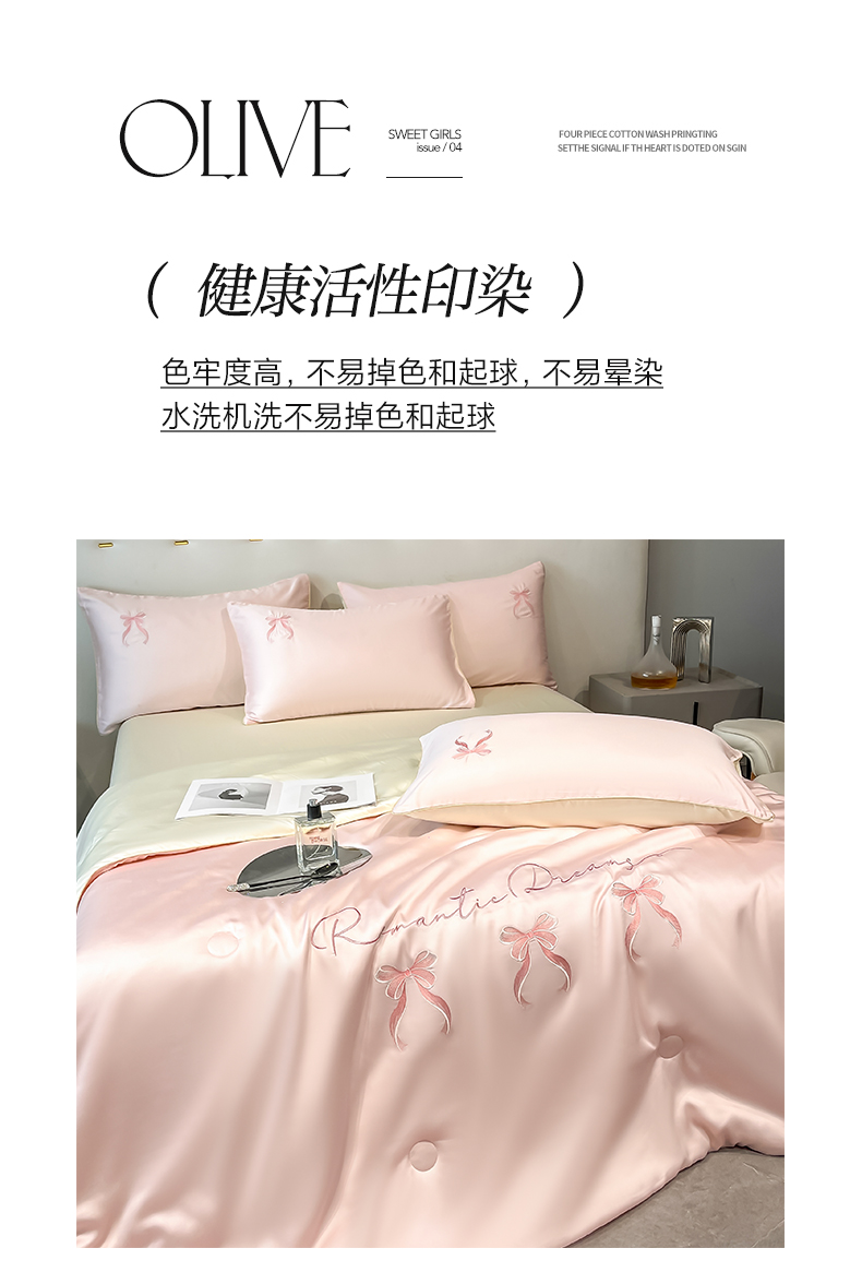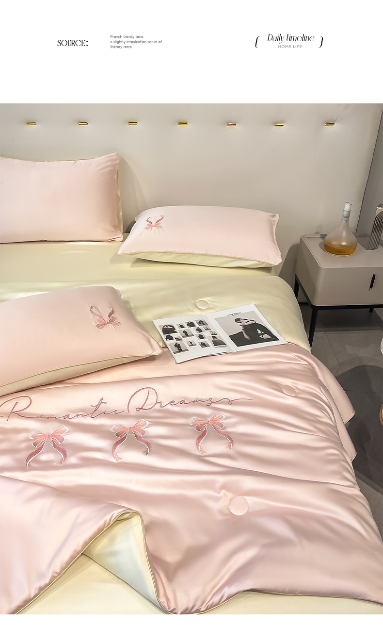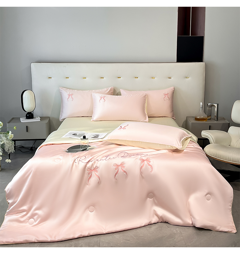 如一 2025新款水洗冰丝麻绳夏被四件套-初夏 初夏-粉米