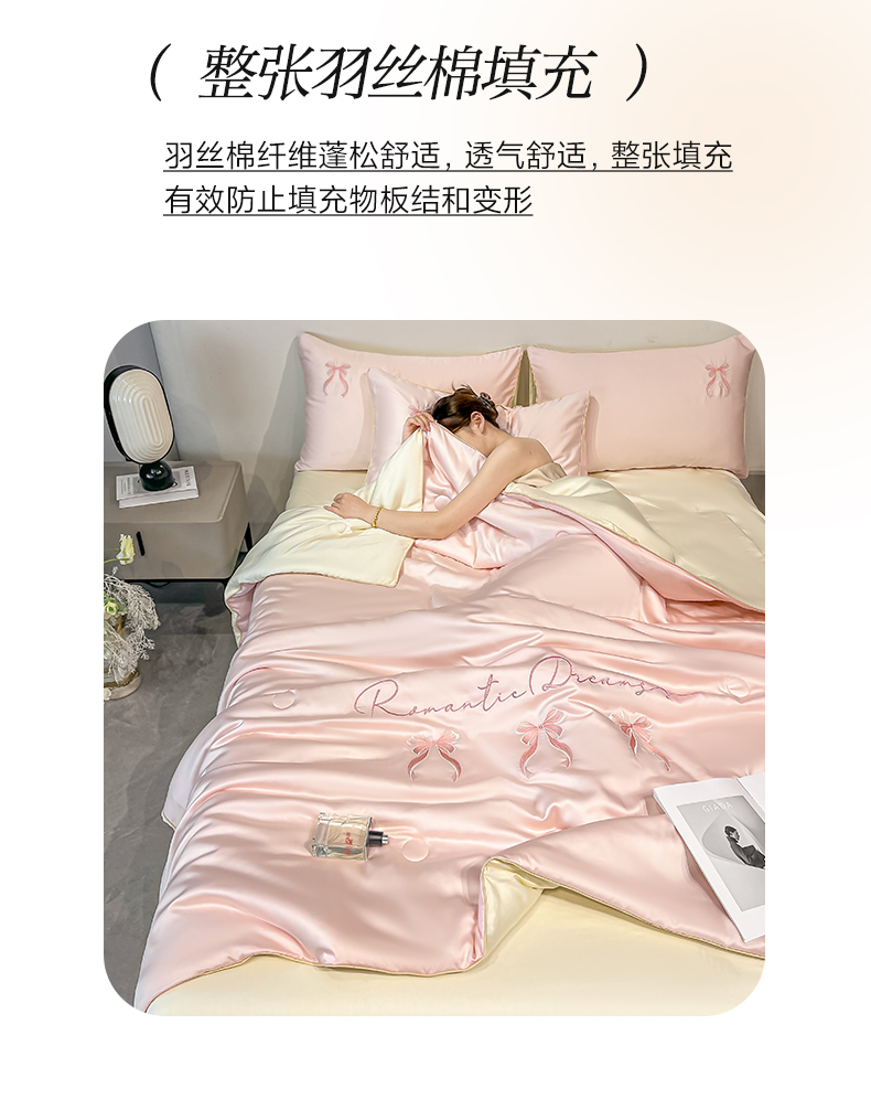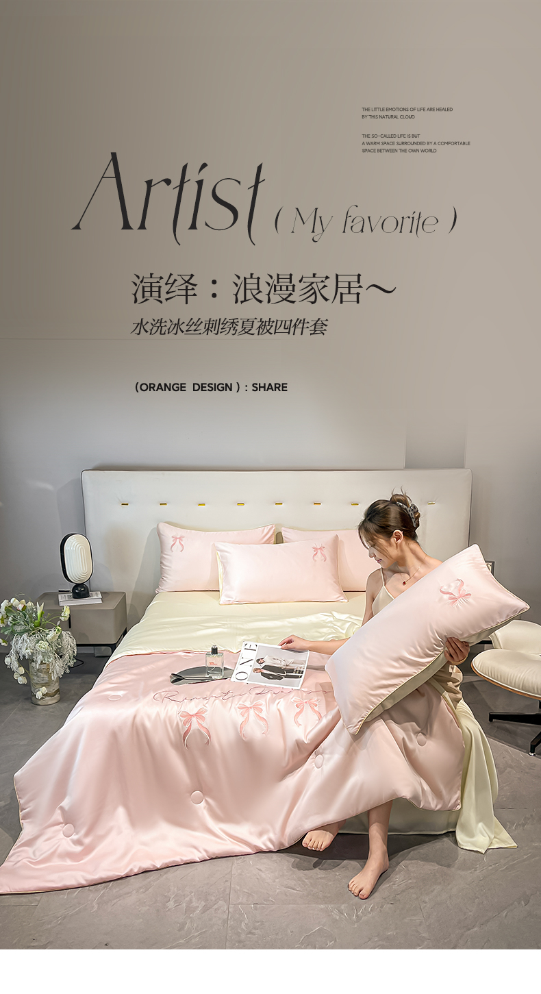 • 91家纺网 家纺一手货源 找家纺 如一 2025新款水洗冰丝麻绳夏被四件套-初夏 初夏-粉米