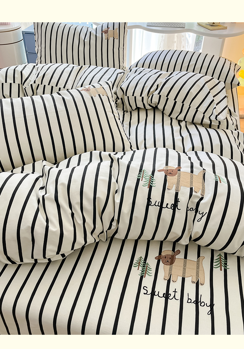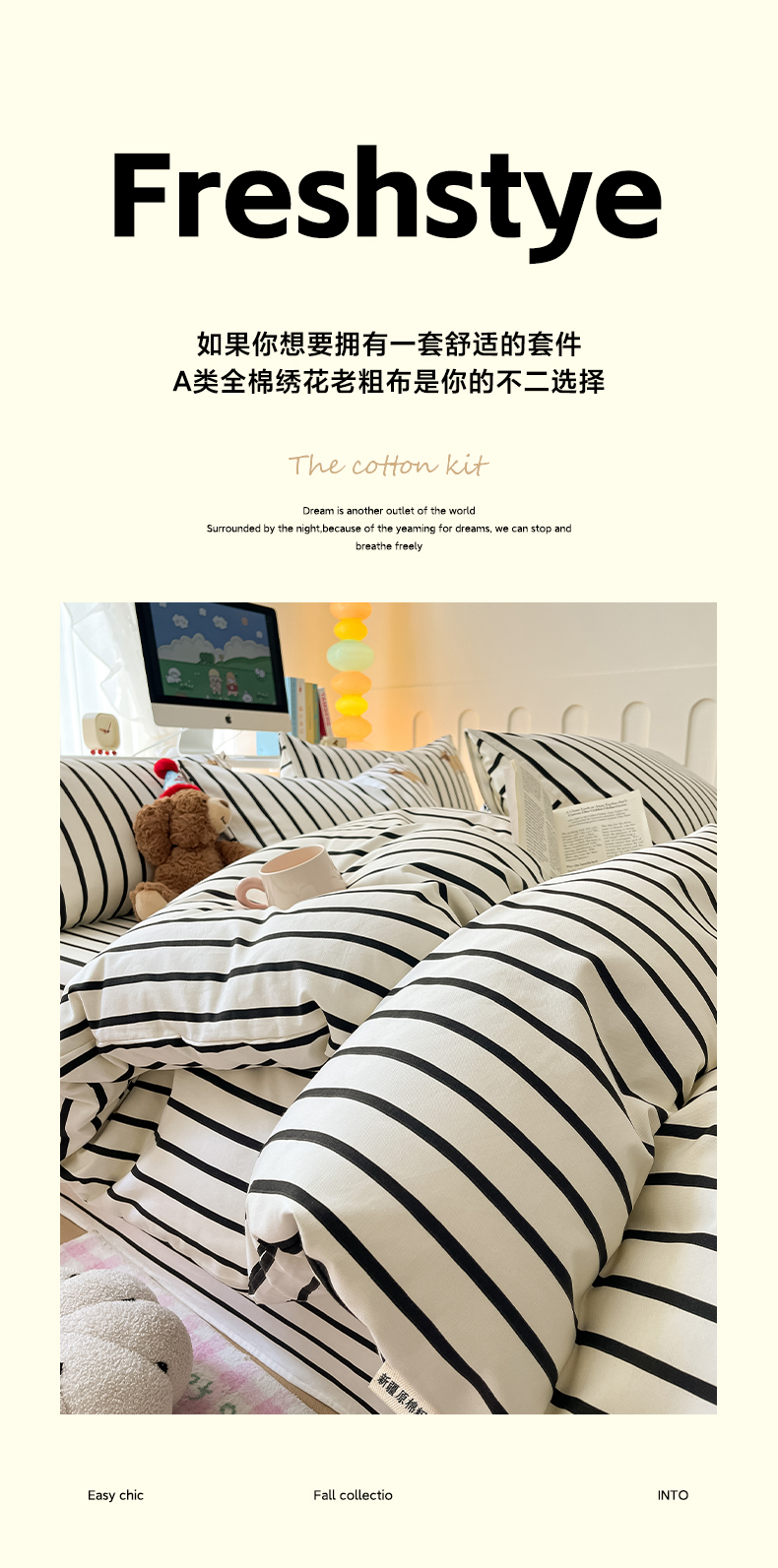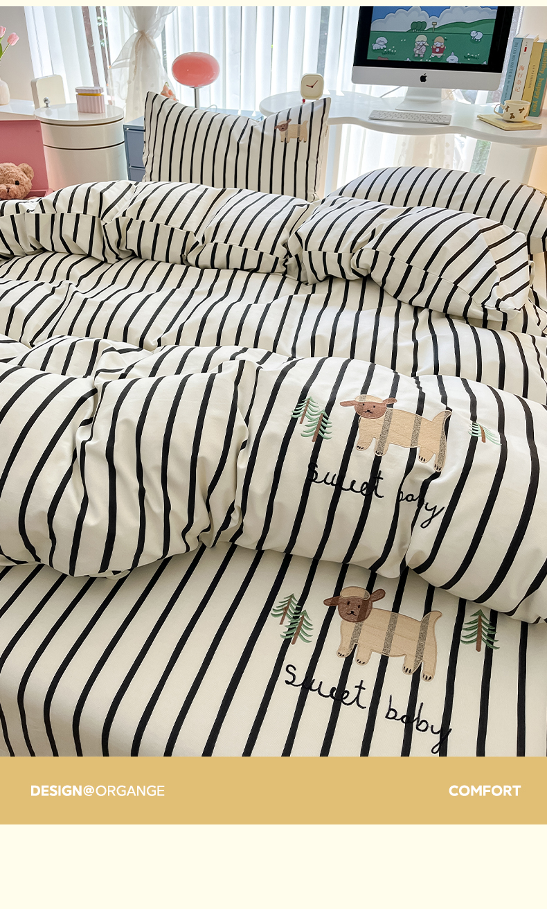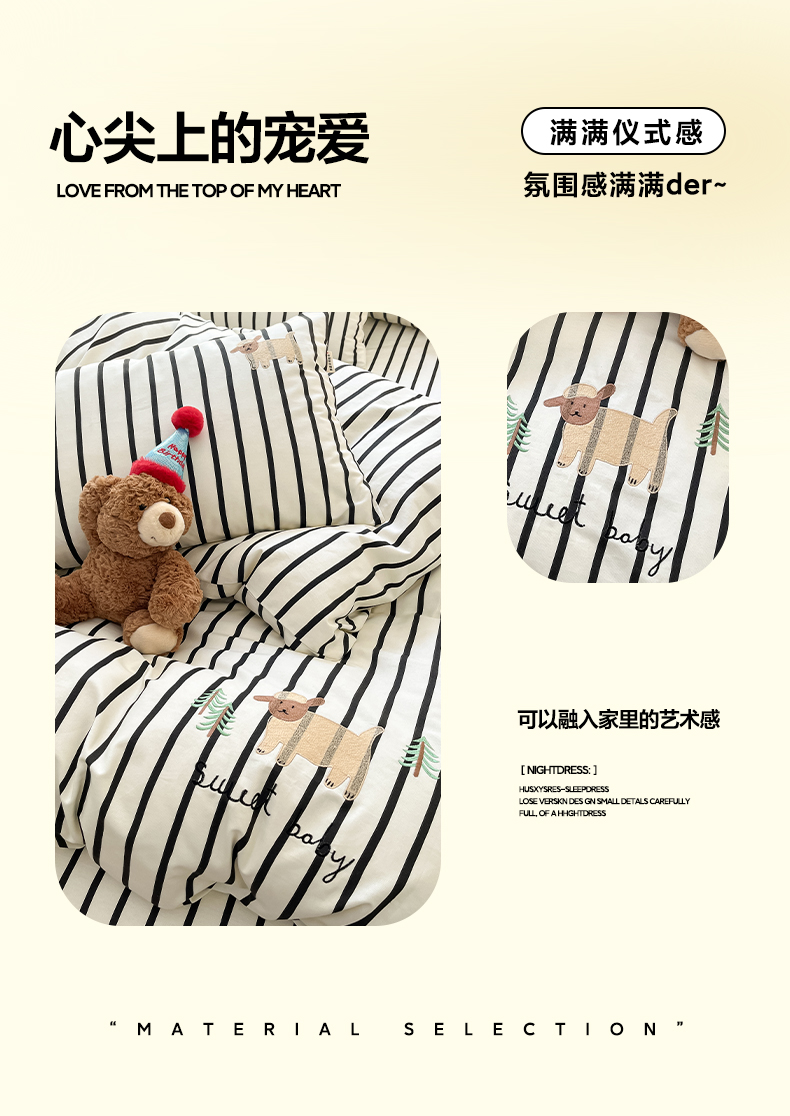 当前位置: 91家纺网 > 商品网购 > 床品套件 > 四件套 > 全棉普通四件套 > 雅居纺家纺 2025春夏新款全棉纯棉绣花老粗布四件套 小绵羊