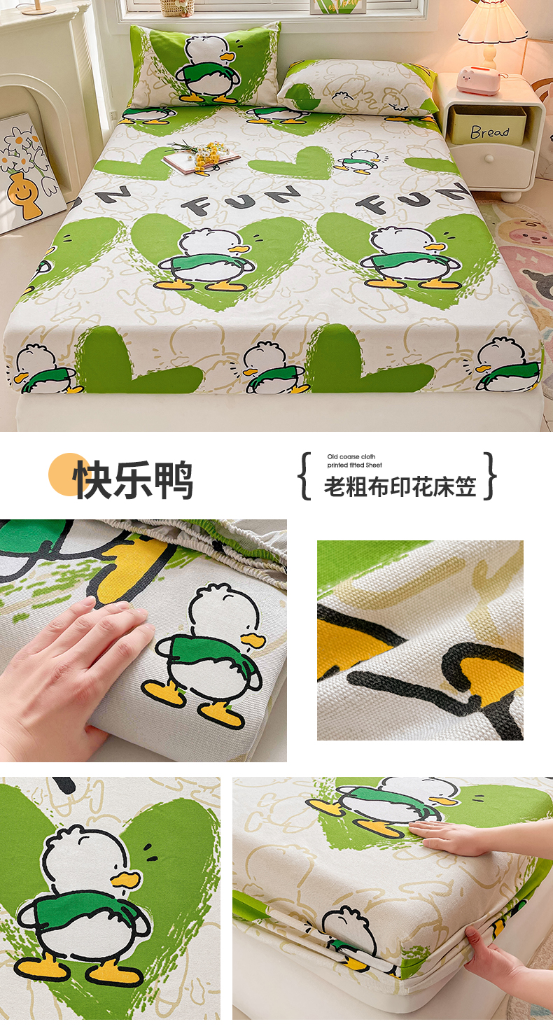 • 91家纺网 家纺一手货源 找家纺 晓时候2025新款老粗布床笠凉席 快乐鸭