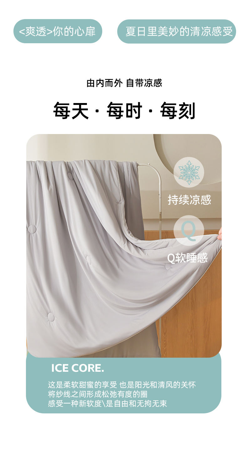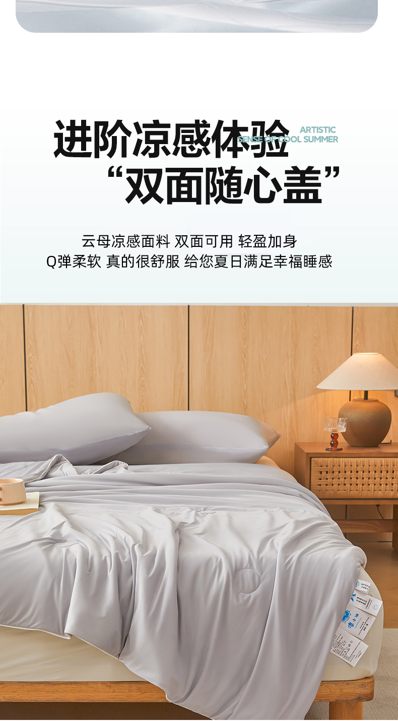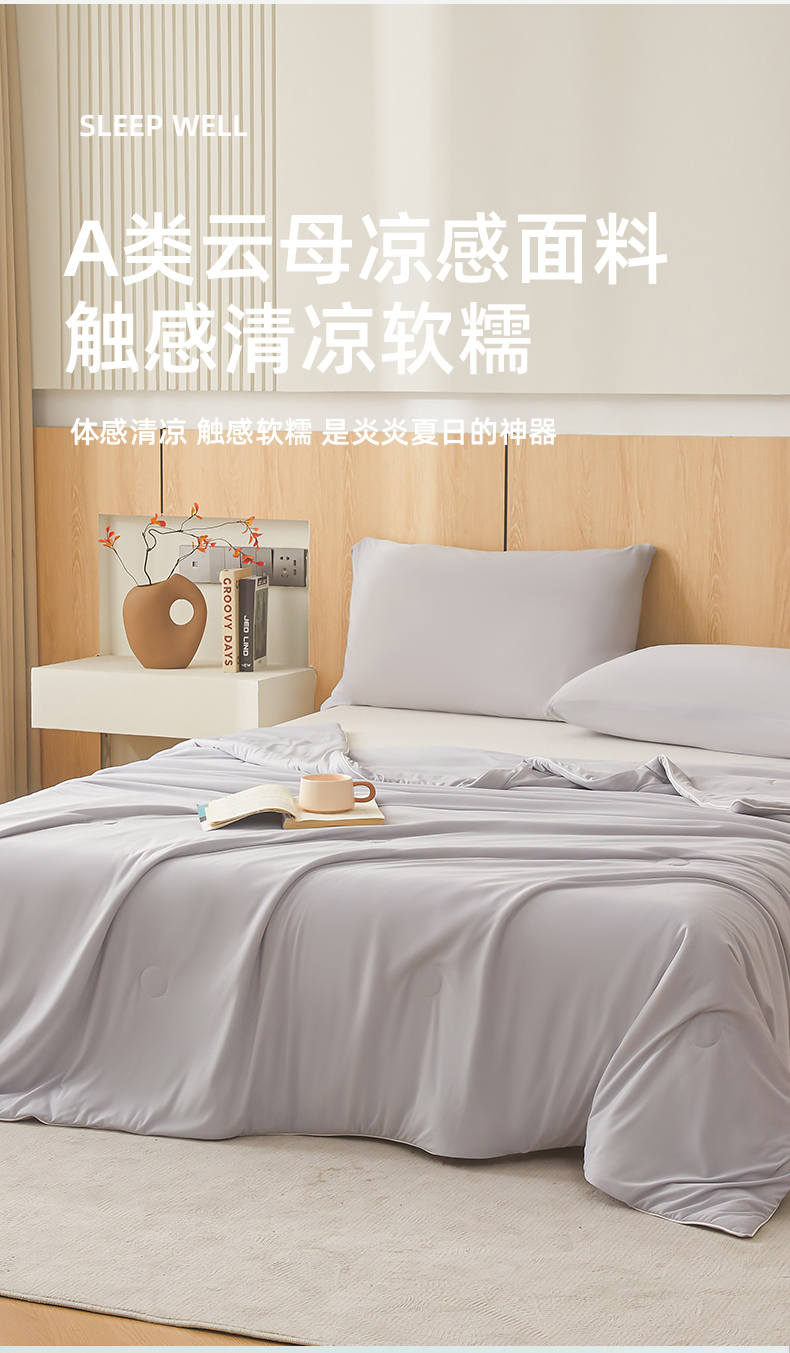 鸿羽樱家纺《原伊菲晓》 2025新款夏被空调被A类云母氨纶凉感丝夏凉被 山灰