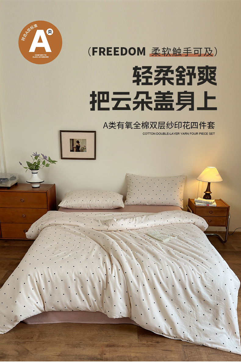 当前位置: 91家纺网 > 商品网购 > 床品套件 > 四件套 > 双层纱四件套 > 亿梵家居 2025新款A类母婴级有氧全棉纯棉双层纱纯棉印花四件套-床拍图半岛铁盒-粉