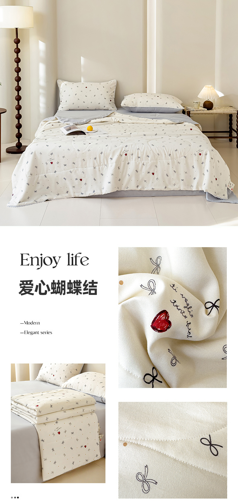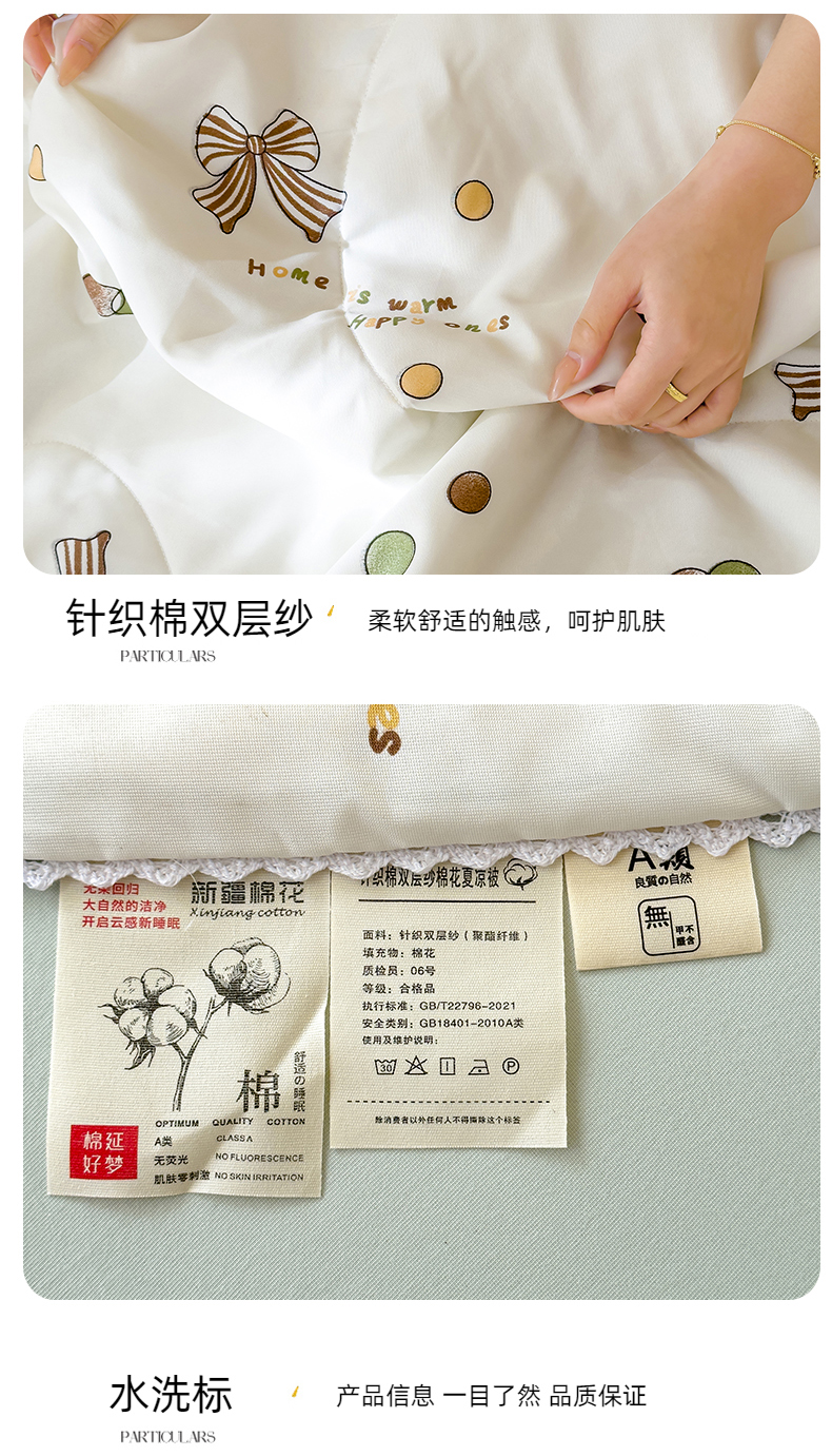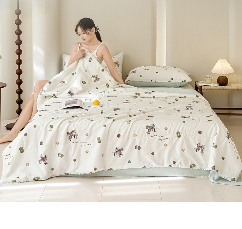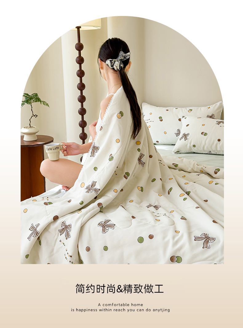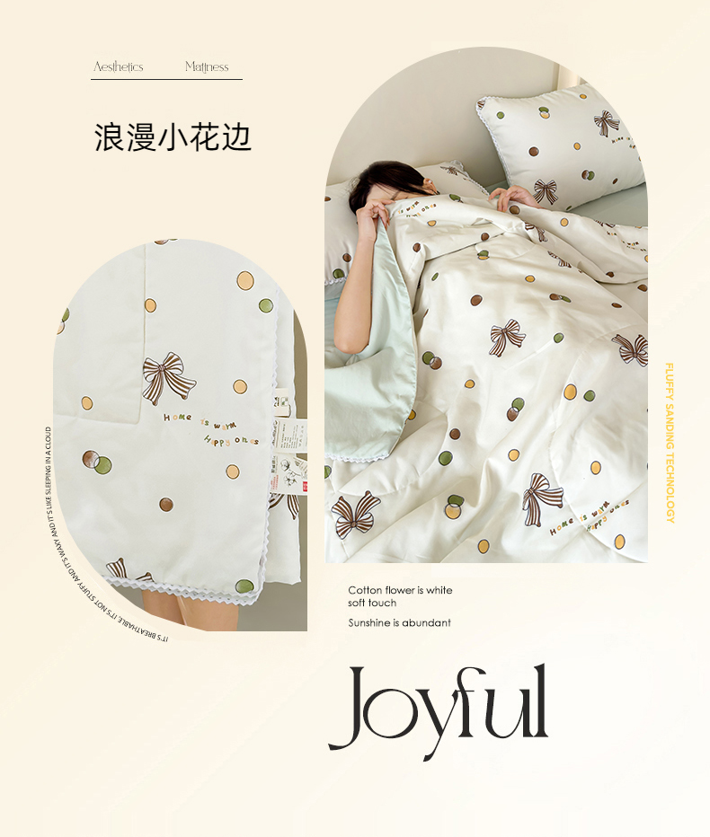 当前位置: 91家纺网 > 商品网购 > 被子 > 夏被 > 2025新款针织棉双层纱小花边棉花夏凉被 咖色蝴蝶结