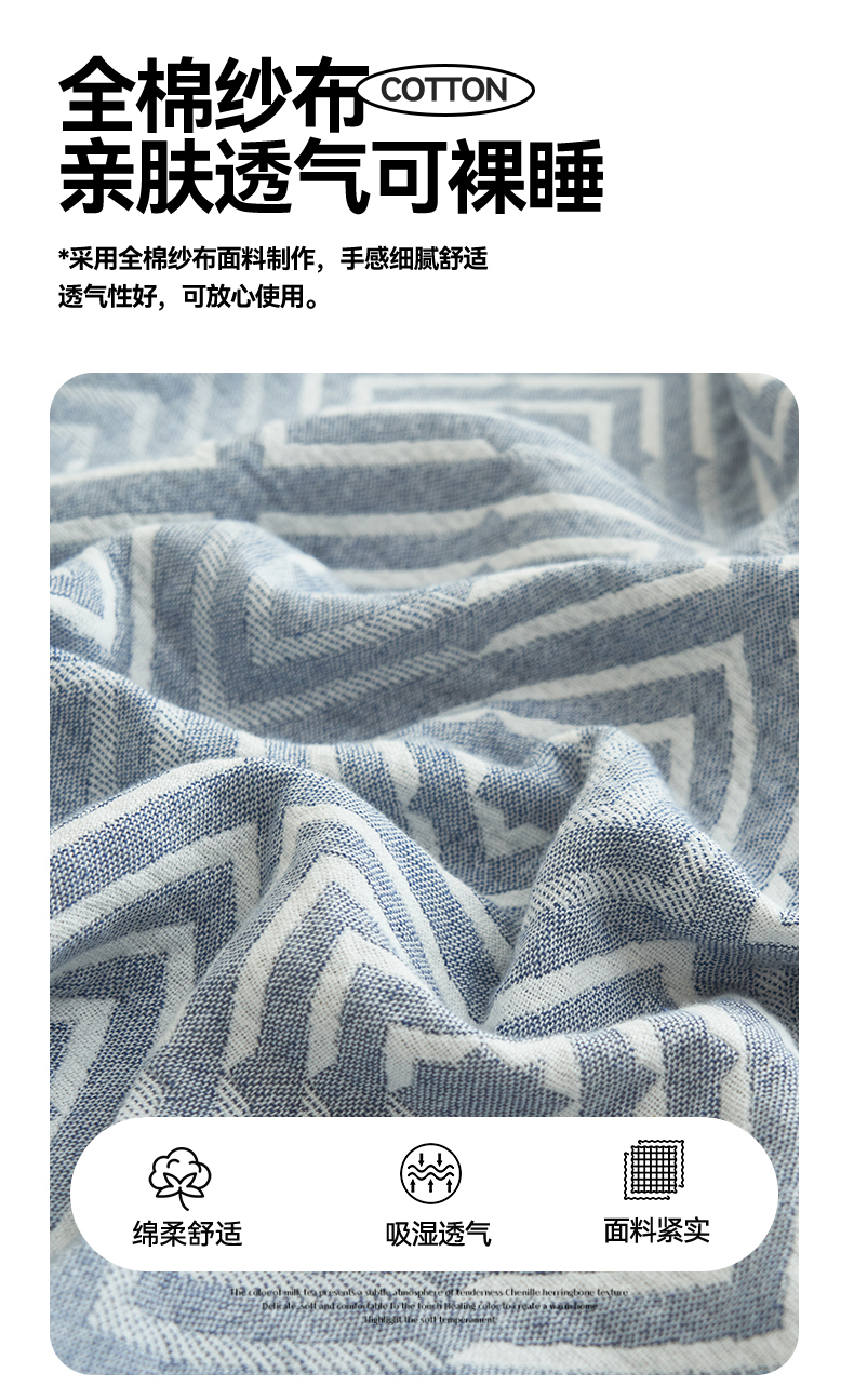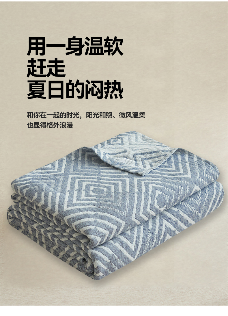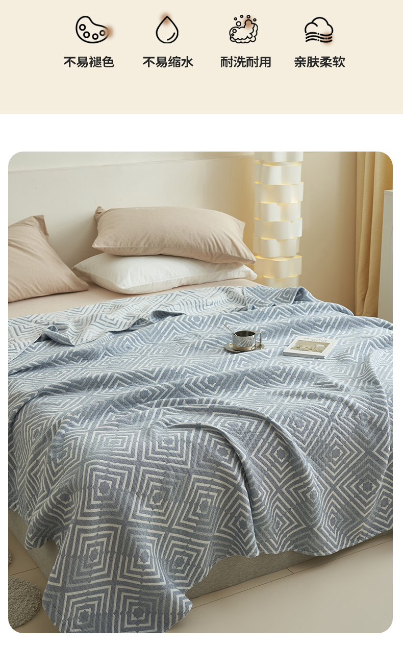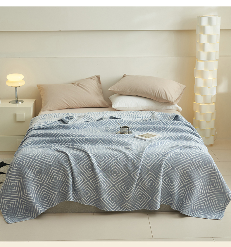 商品名称: 2025新款全棉毛巾被全棉纱布盖毯(已做缩水处理) 网格-深蓝