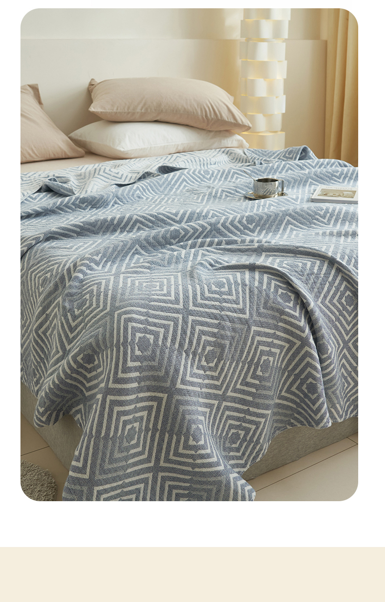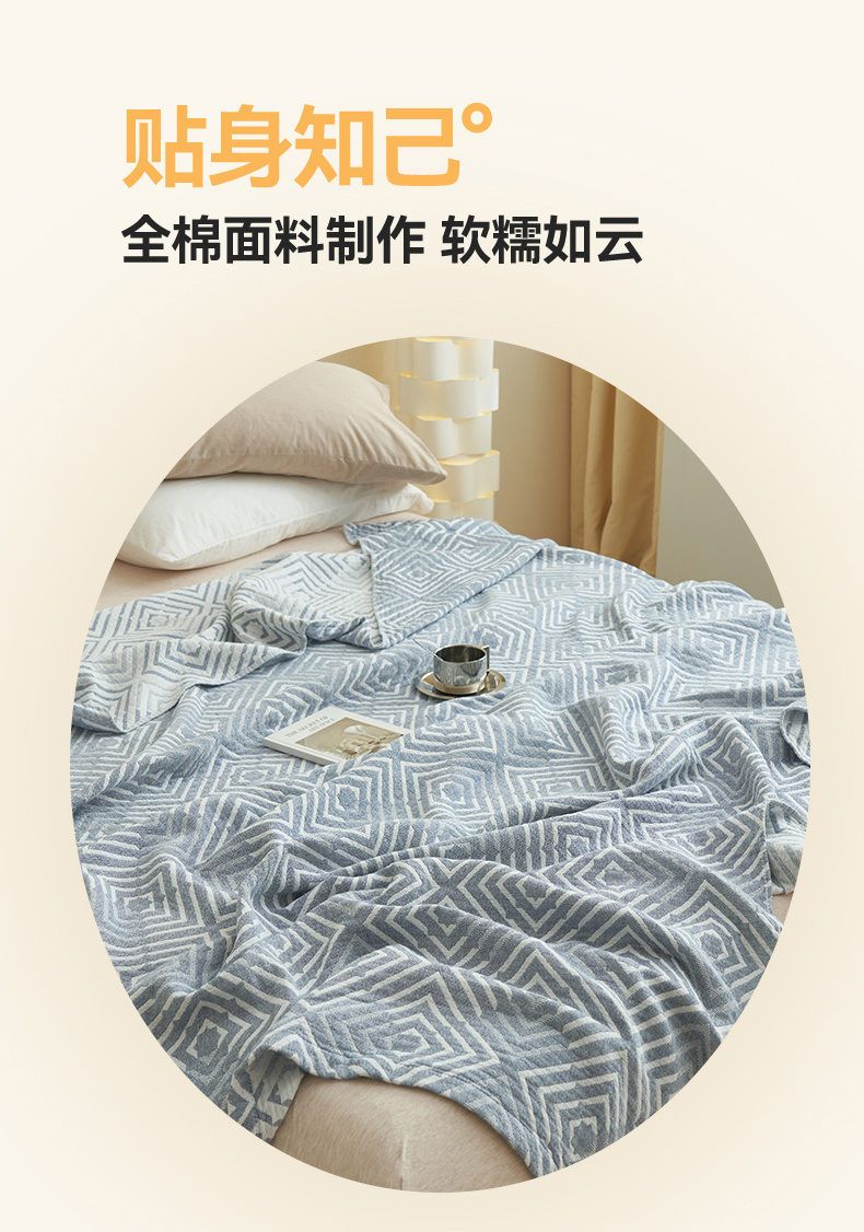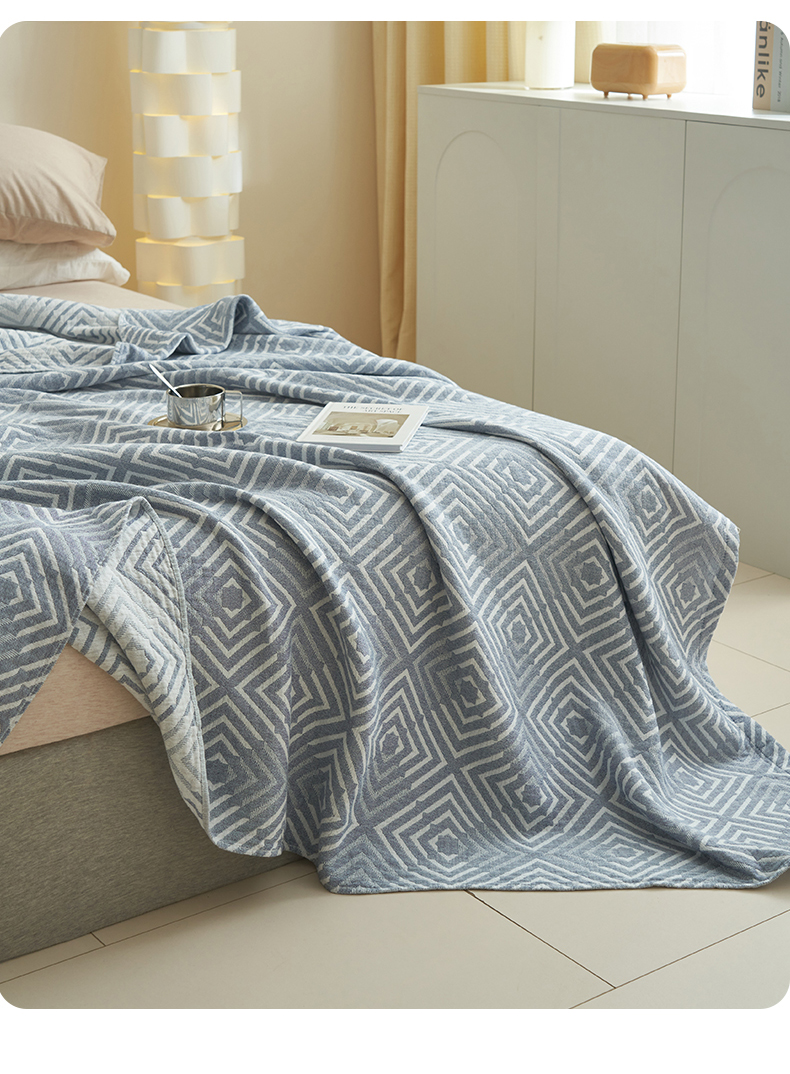 商品名称: 2025新款全棉毛巾被全棉纱布盖毯(已做缩水处理) 网格-深蓝