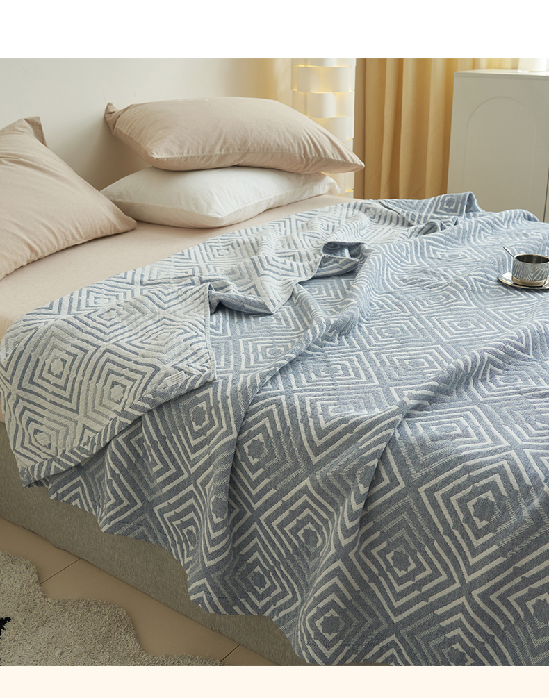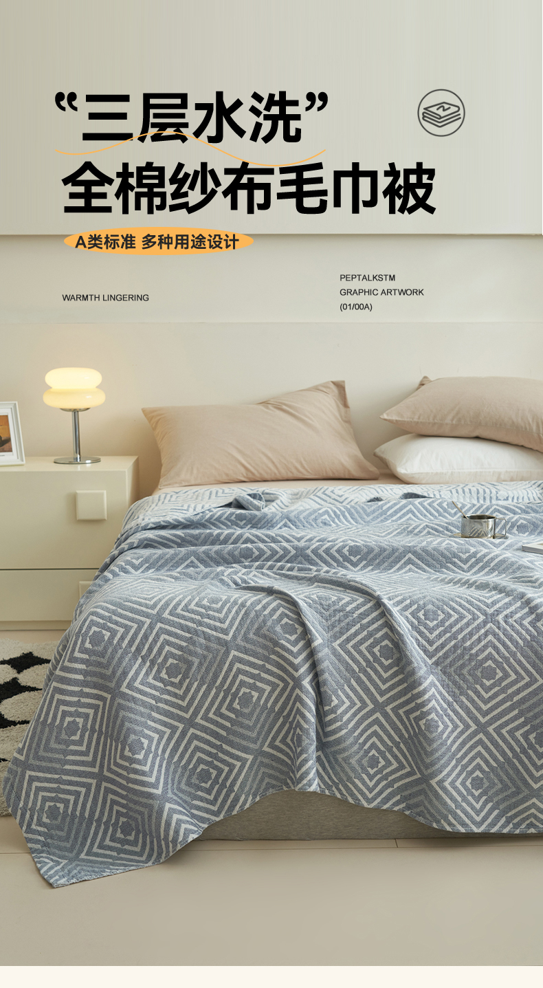 2025新款全棉毛巾被全棉纱布盖毯(已做缩水处理) 网格-深蓝
