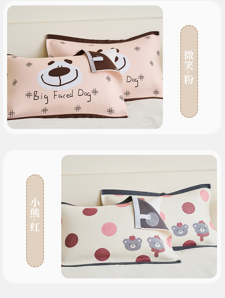 2025新款全棉多层细沙提花枕巾 小熊-浅紫
