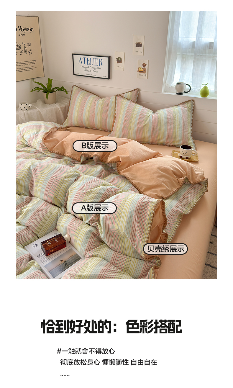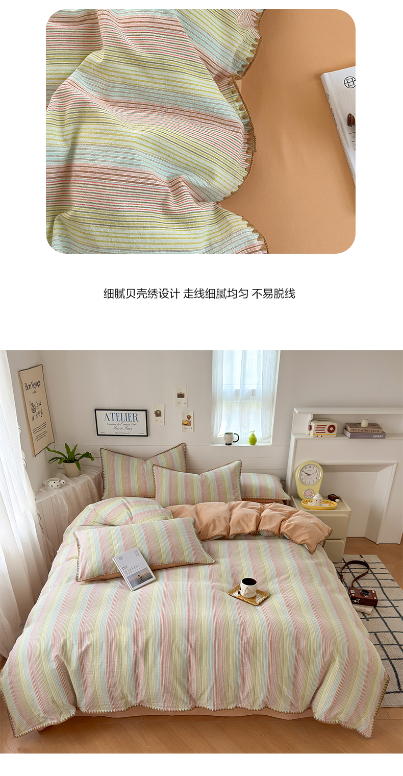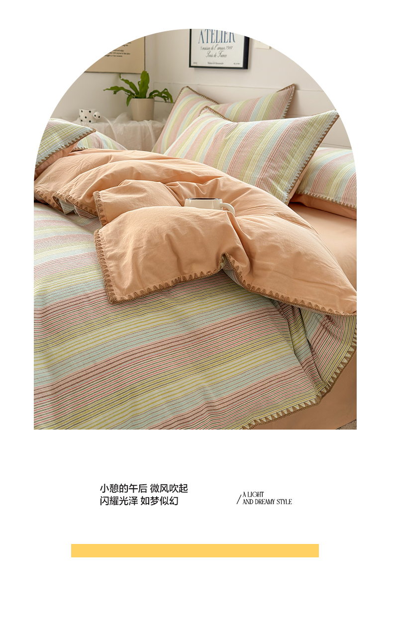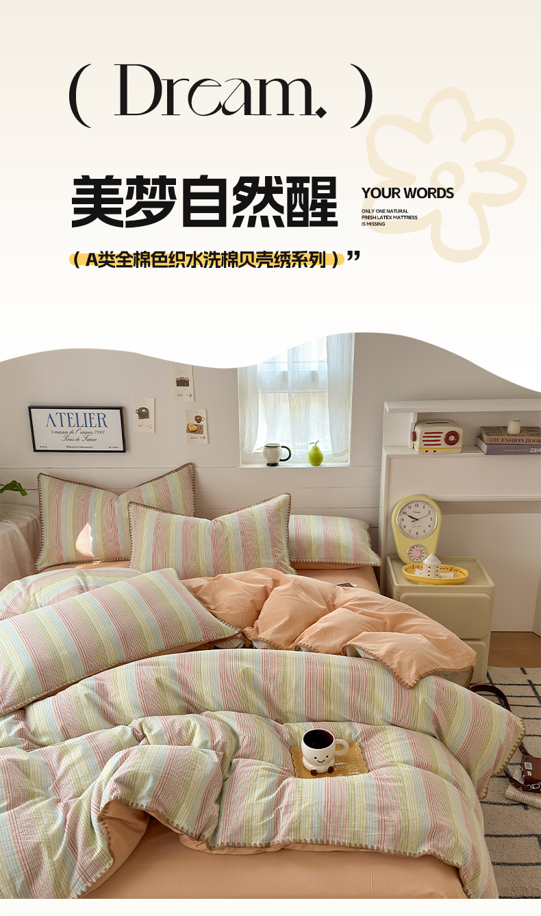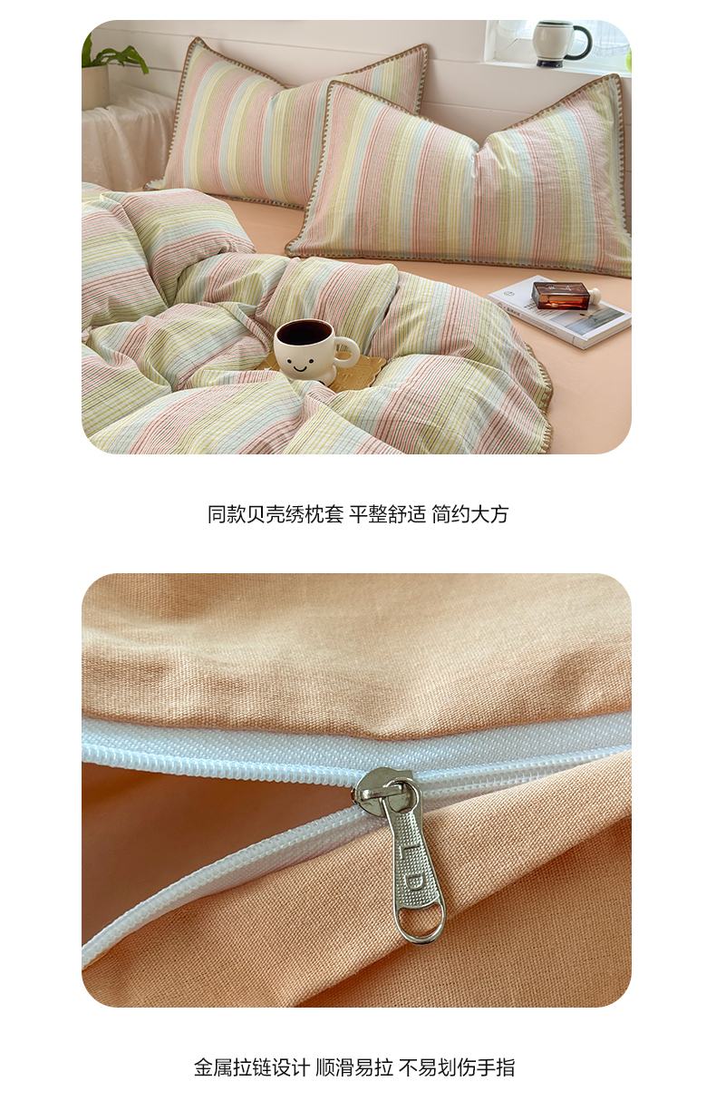当前位置: 91家纺网 > 商品网购 > 床品套件 > 四件套 > 水洗棉四件套 > 2025新款A类全棉色织水洗棉贝壳绣条纹系列四件套 克鲁奇奶咖