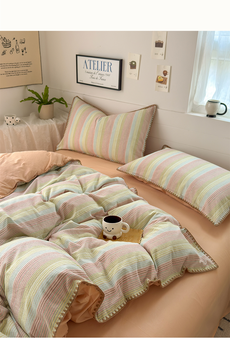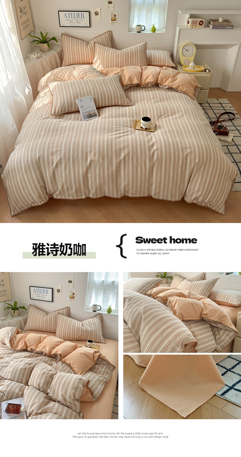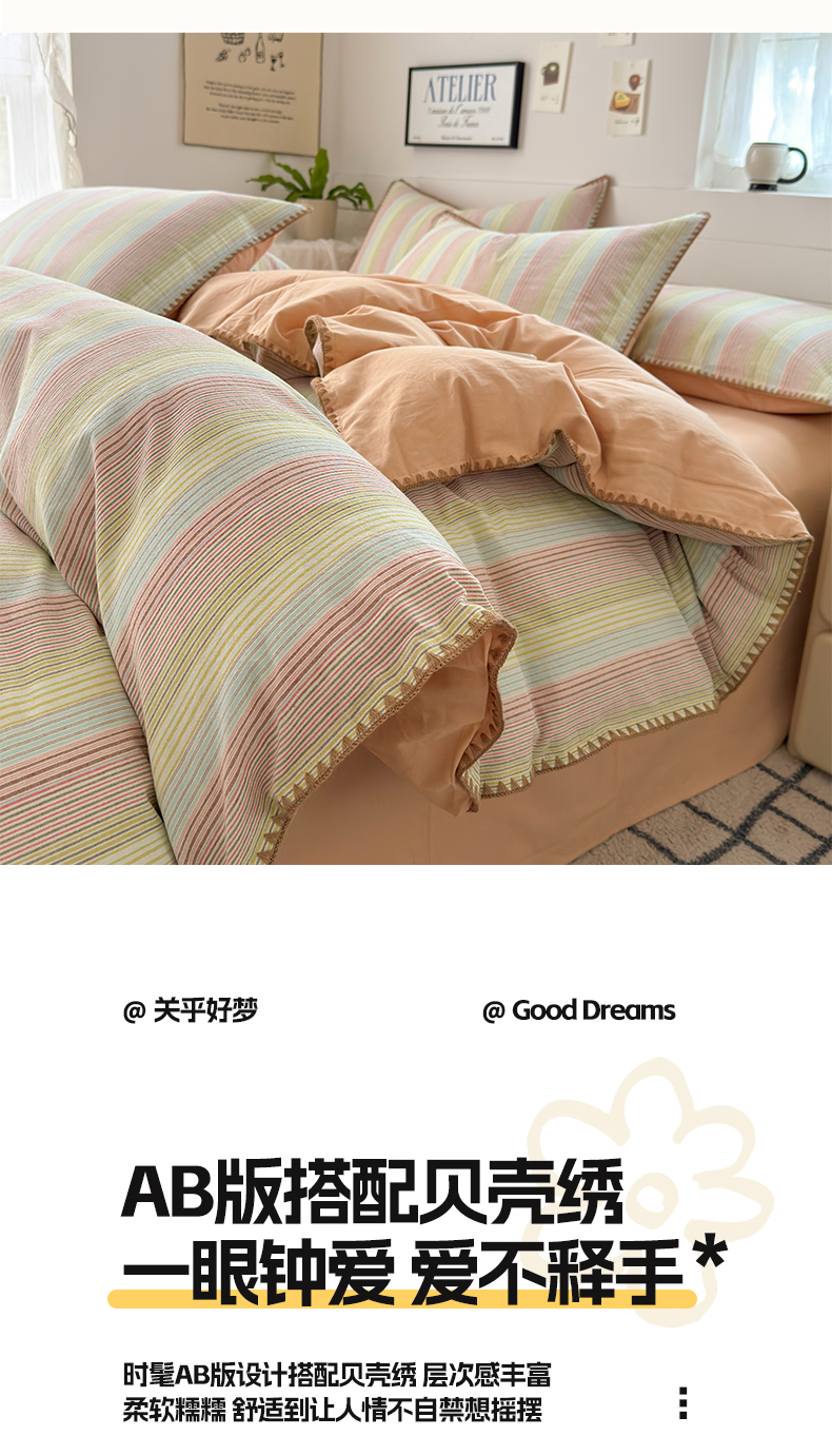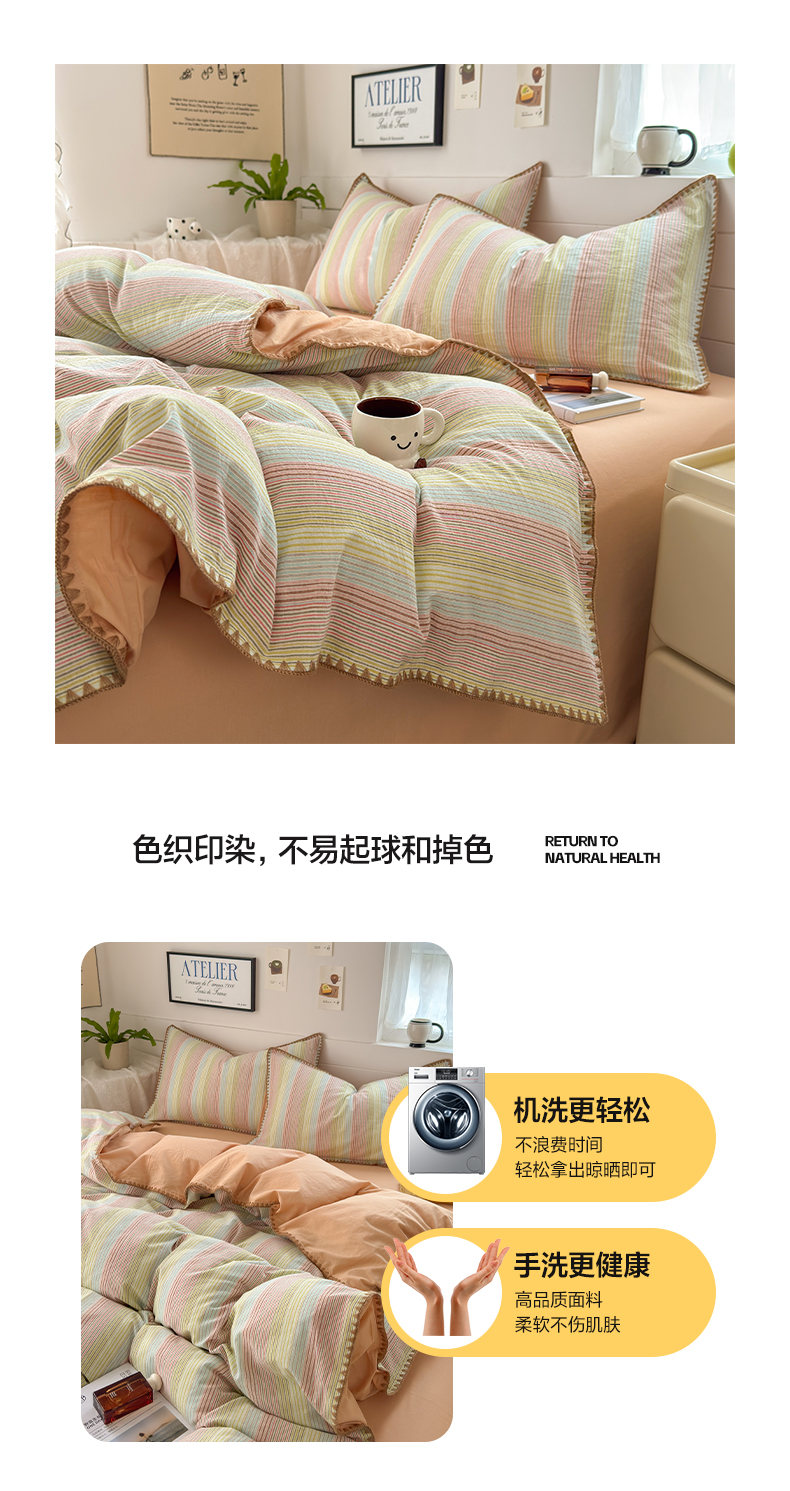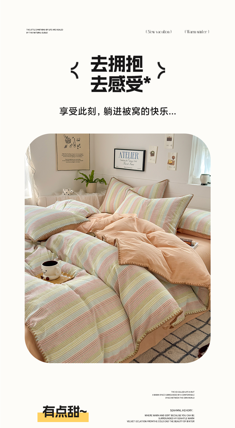 当前位置: 91家纺网 > 商品网购 > 床品套件 > 四件套 > 水洗棉四件套 > 2025新款A类全棉色织水洗棉贝壳绣条纹系列四件套 克鲁奇奶咖