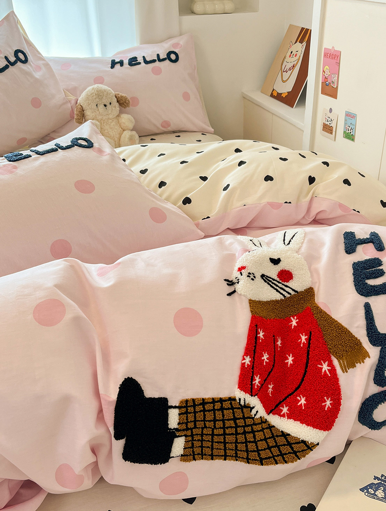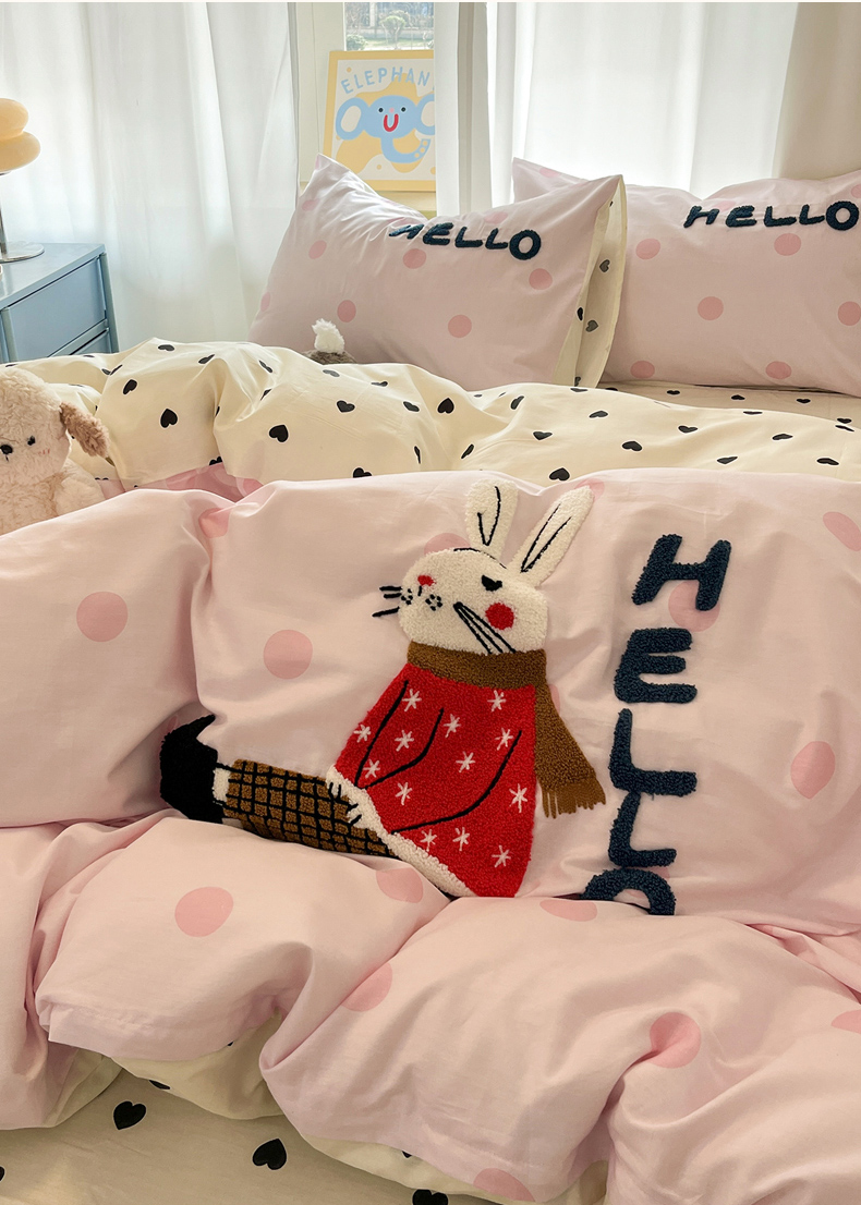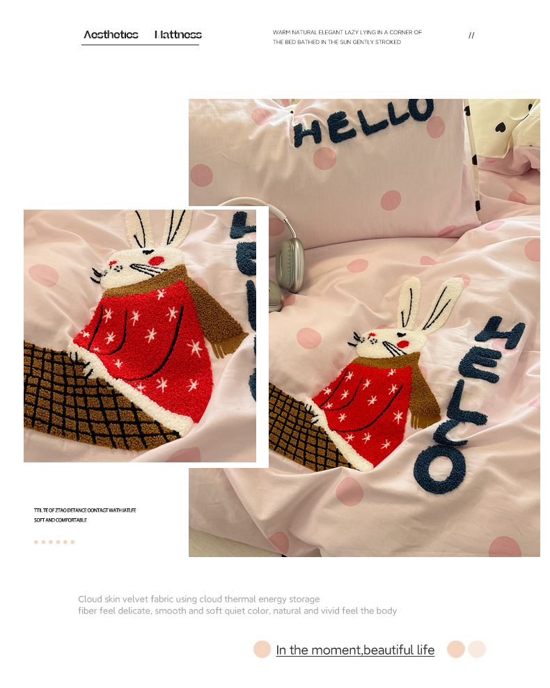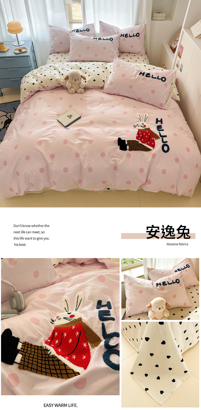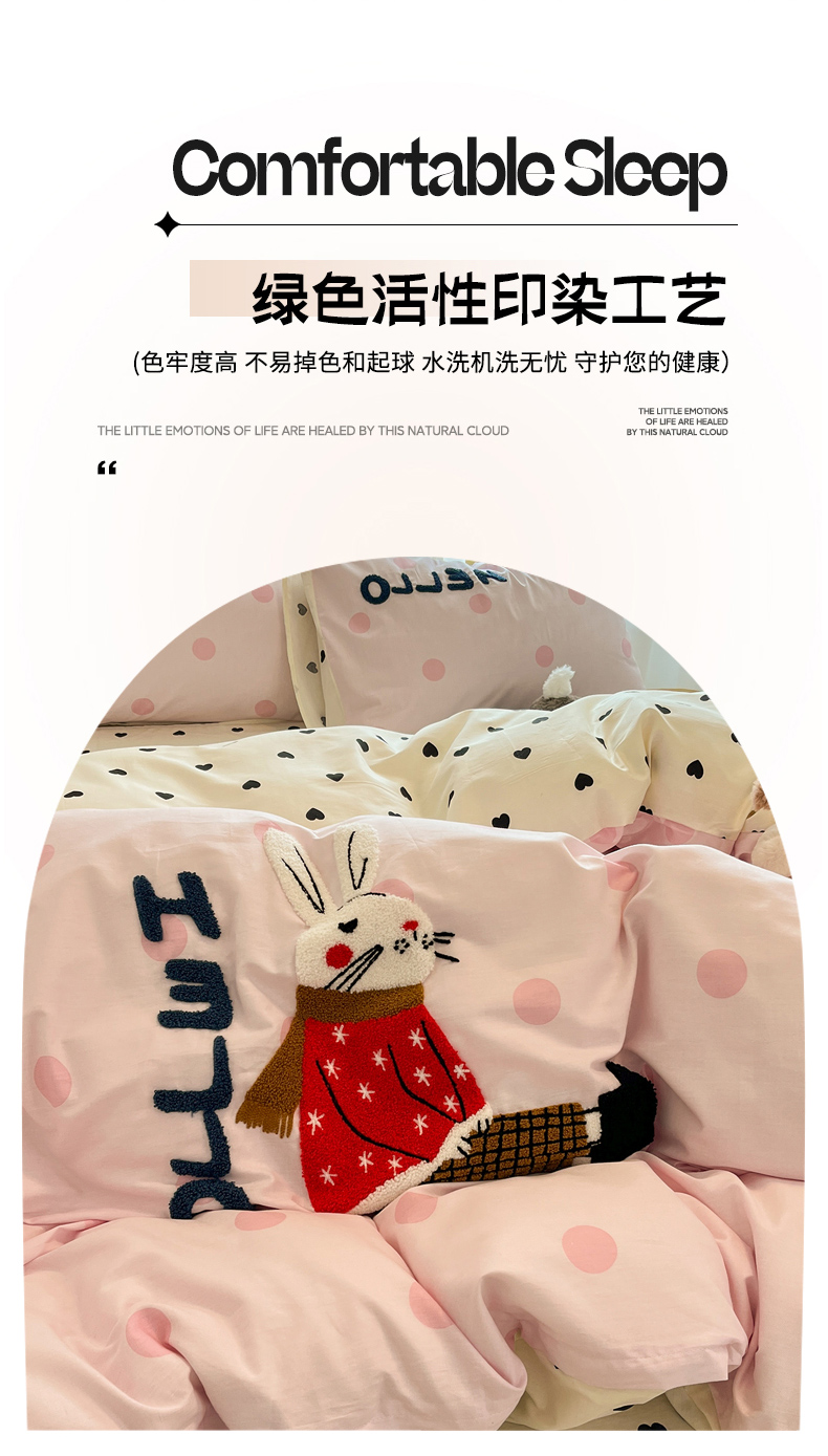 商品名称:沐辰 2025新款13372全棉毛巾绣四件套 安逸兔